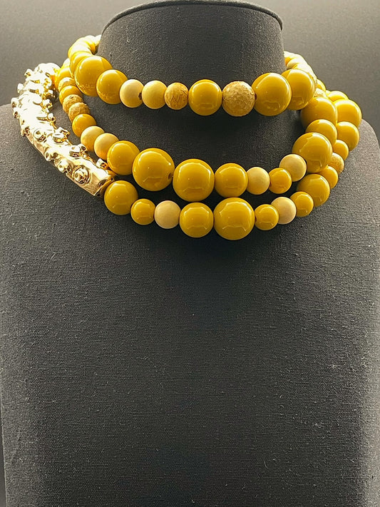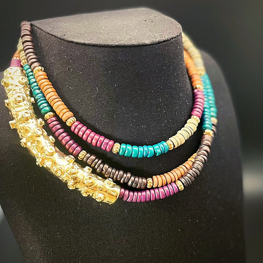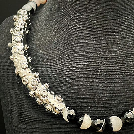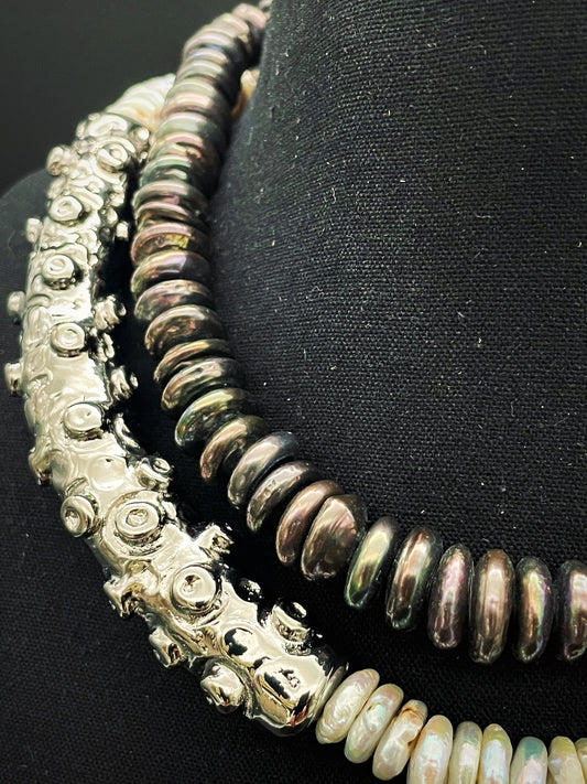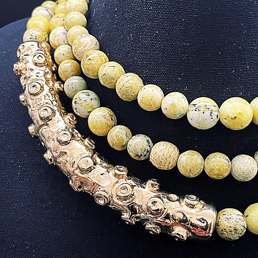 Collana Octopus con elementi in vera pelle di pitone, legno e resina