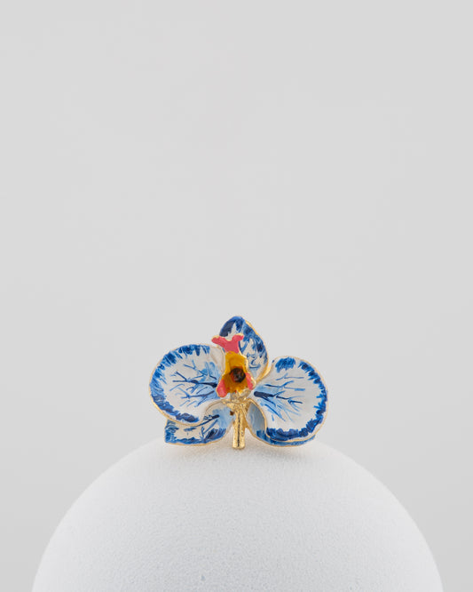 Anello Orchidea Latte e Blue China dimensione 3 cm