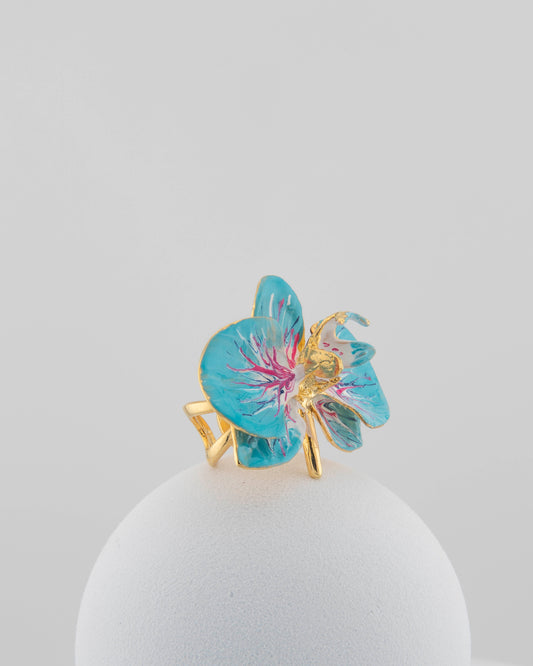 Anello Orchidea 'Turchese' dimensione 4 cm