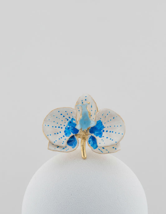 Anello Orchidea 'Latte e Blue China' dimensione 4 cm
