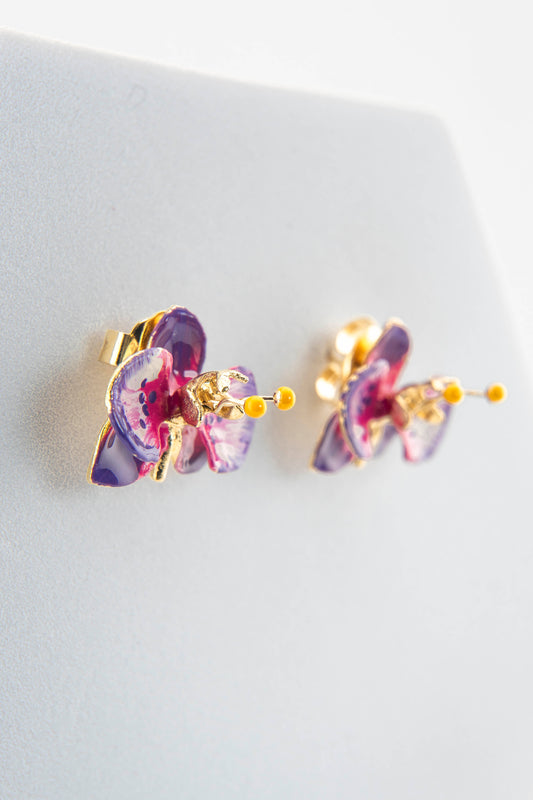 Orecchini Orchidea 'Purple e Geranio' dimensione 2 cm