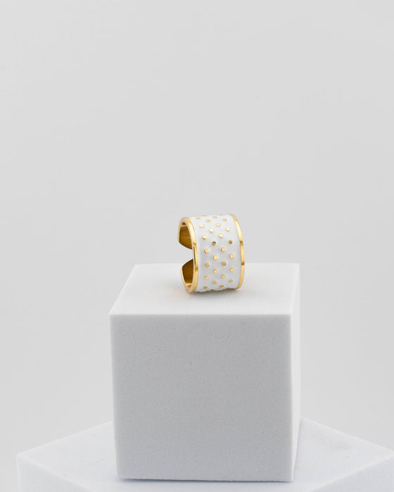 The Smalto Rings by Marri Cortona are born from an original design that celebrates the encounter between the warm glow of gold and the bold purity of Black & White enamel.