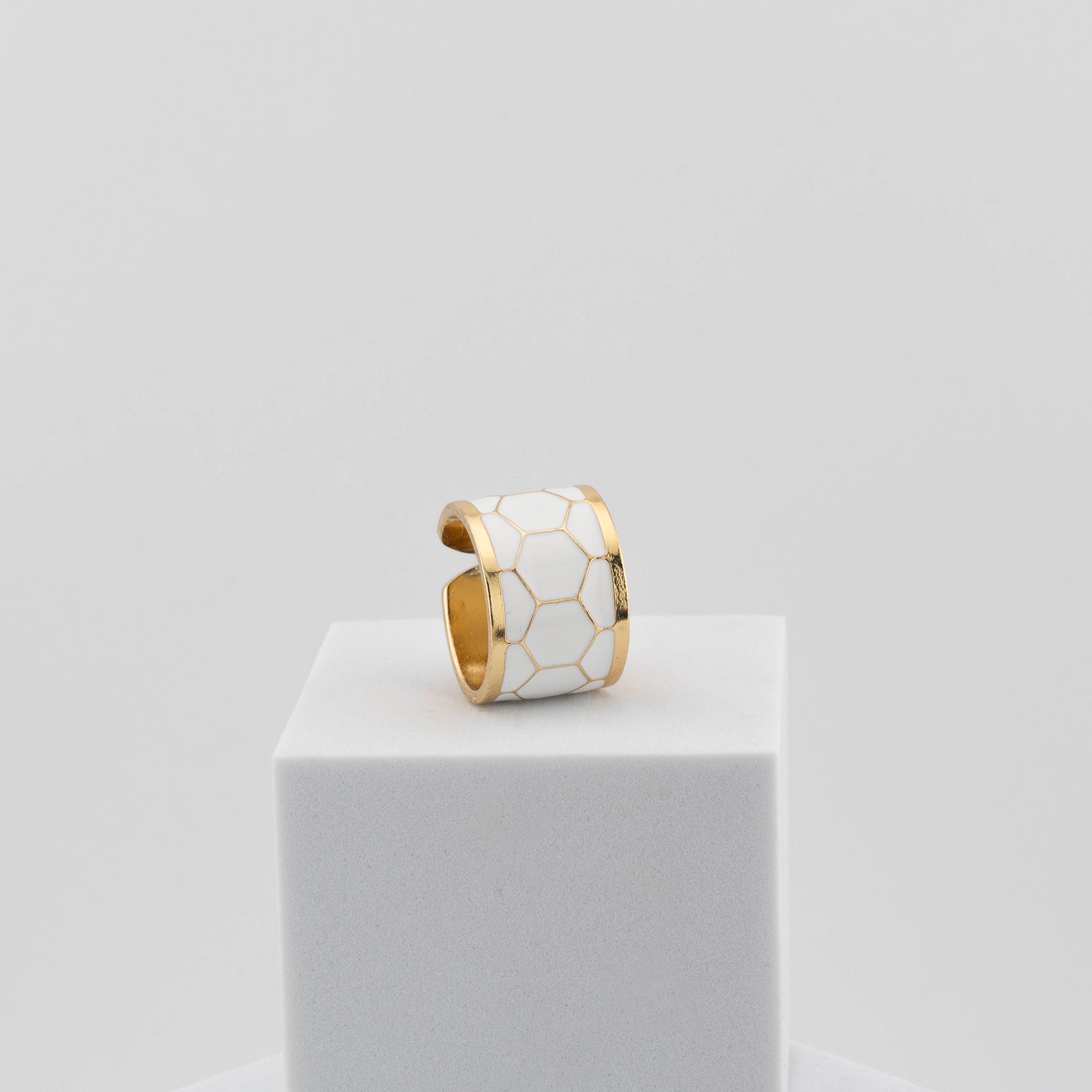 Adjustable band, the MarriCortona Enamel Rings are an explosion of light. The light of 18-karat gold and Black & White enamel make the ring unique. Handmade in Tuscany, in our laboratory by the expert hands of our craftsmen.
