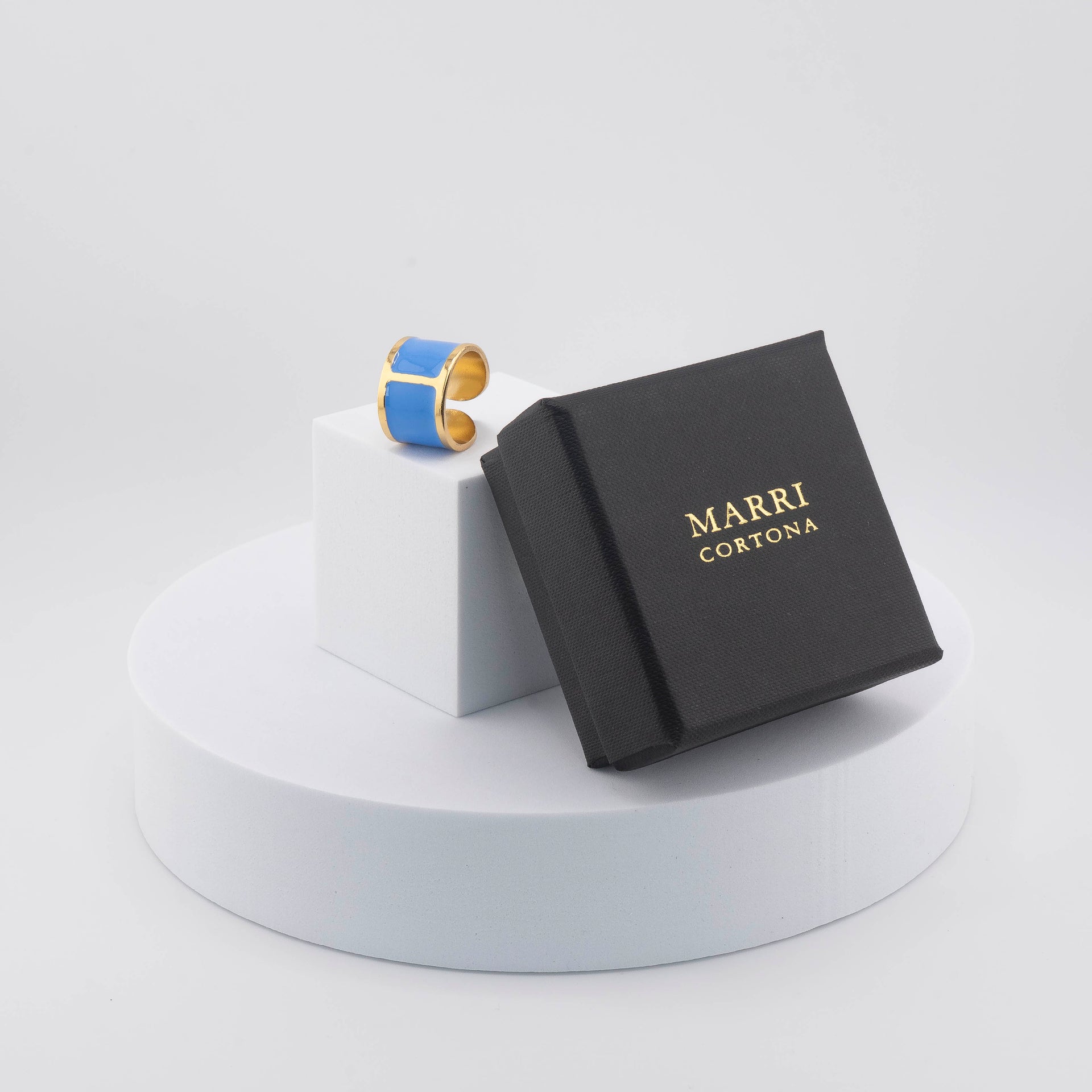 The MarriCortona Smalto Rings are a radiant fusion of light and color, where the brilliance of 18k gold plating meets the vibrant beauty of hand-painted ceramic enamel.