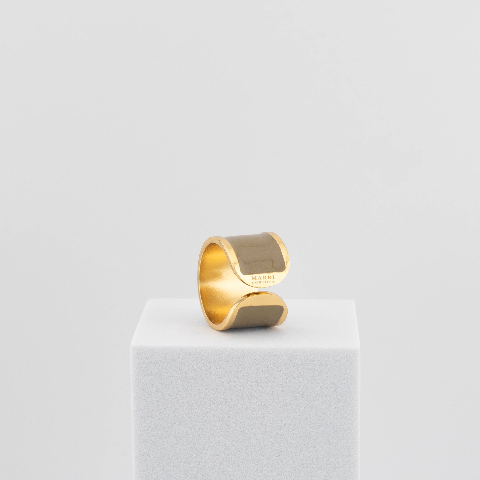 Each Smalto Band Ring is born from an exclusive MarriCortona design, handcrafted in Tuscany using the traditional bronze sheet technique — a process that shapes the metal into smooth, harmonious, and perfectly refined forms.