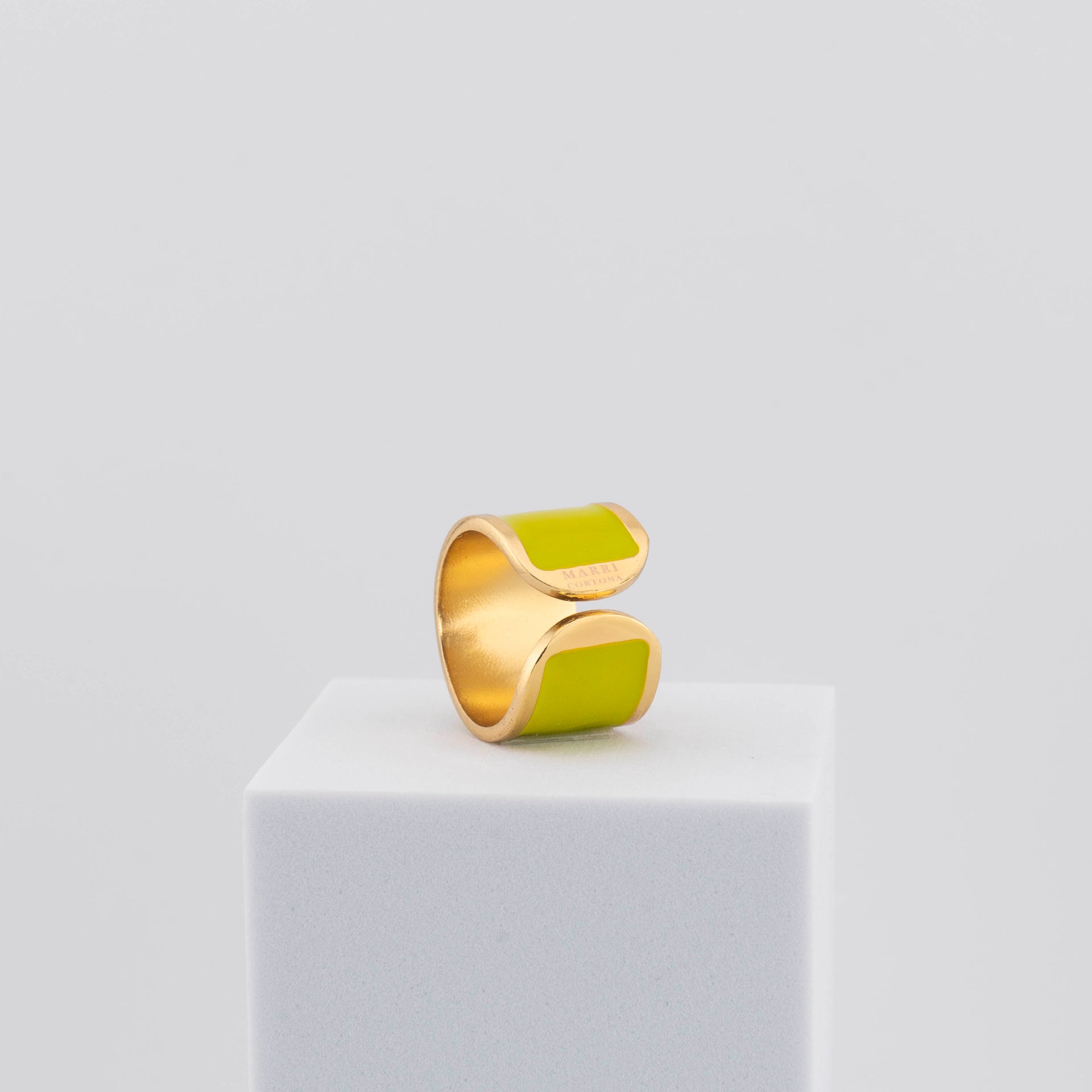 The MarriCortona Smalto Rings are a radiant fusion of light and color, where the brilliance of 18k gold plating meets the vibrant beauty of hand-painted ceramic enamel.