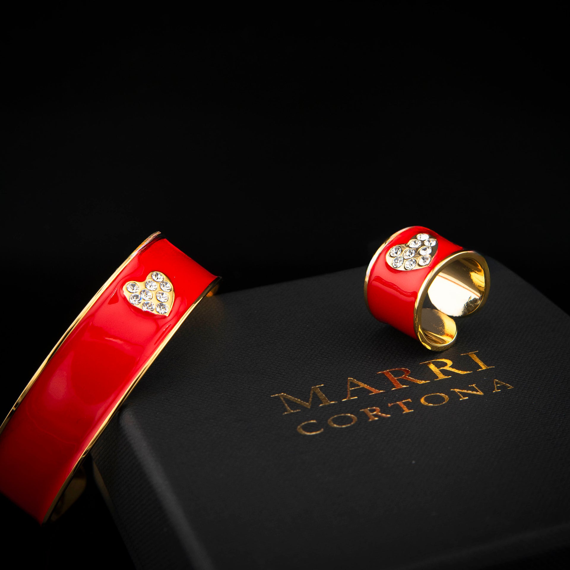 Il bracciale smalto San Valentino di Marri Cortona è elegante e passionale, impreziosito da un cuore di cristalli luminosi che risplende sullo smalto Rosso Valentino. Un simbolo d’amore intenso e raffinato, perfetto per celebrare San Valentino con un tocco di luce e romanticismo.