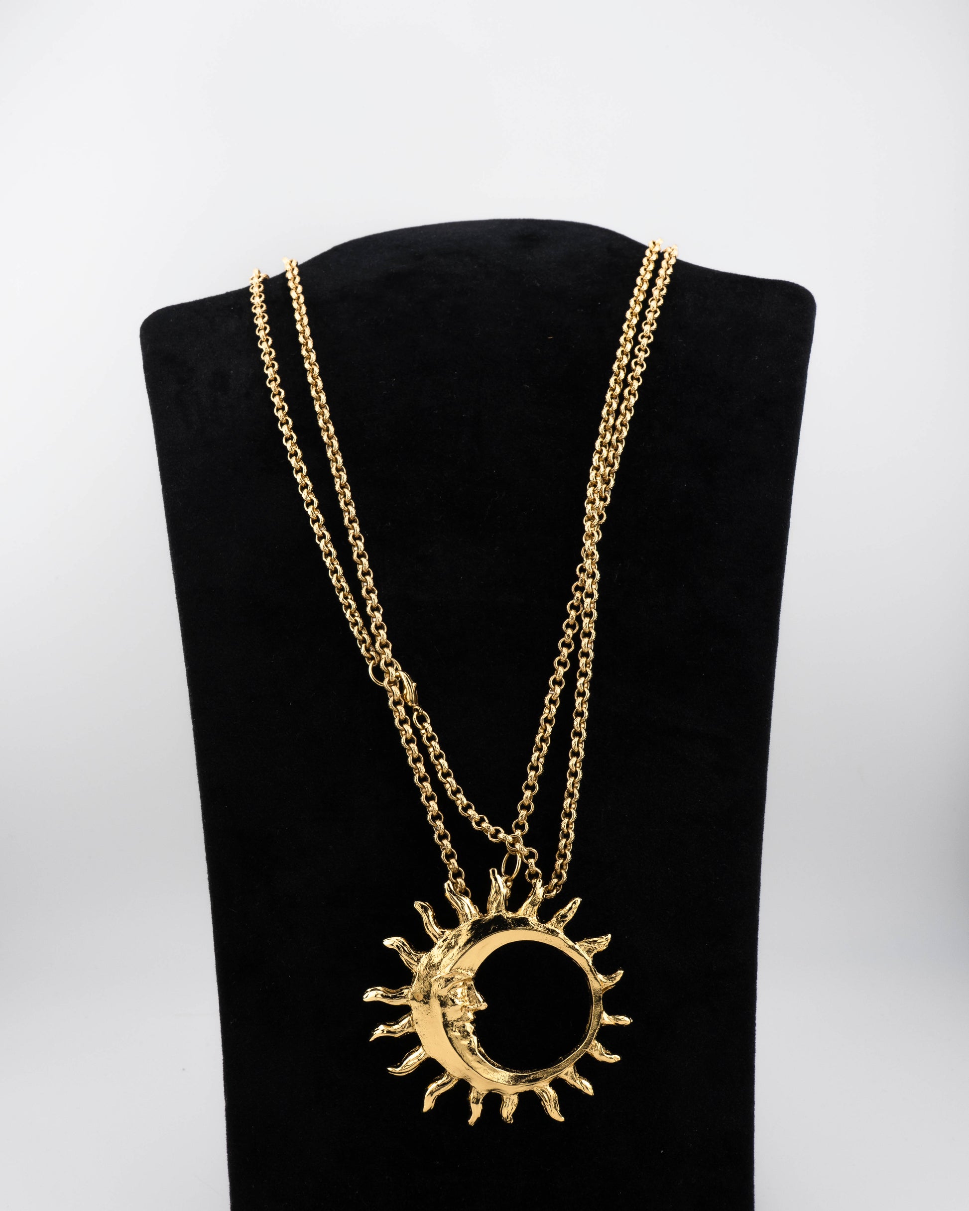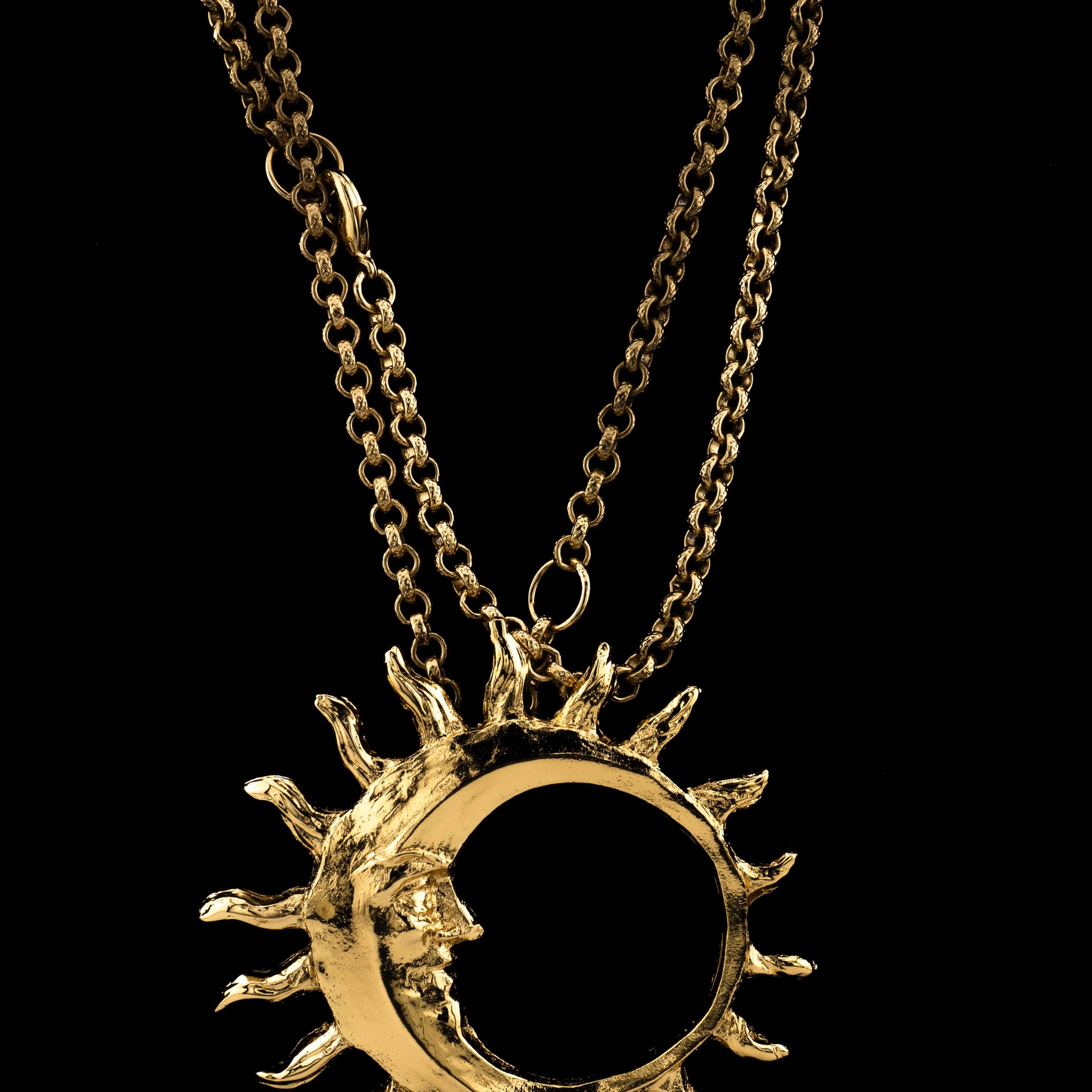 The MarriCortona Moon is crafted using lost-wax casting and finished in gold. It's not only a refined jewel with a striking design, but also a powerful and personal symbol. The lunar theme speaks of mystery, change, femininity, and protection, making this pendant an elegant and deeply meaningful accessory. The moon has always held a strong symbolic meaning in various cultures, and wearing a piece of jewelry depicting it can convey a variety of messages and values. The moon is an ancient symbol of femininity, associated with the mother goddess in many traditions. It reflects lunar cycles and represents feminine power, fertility, growth, and constant transformation.