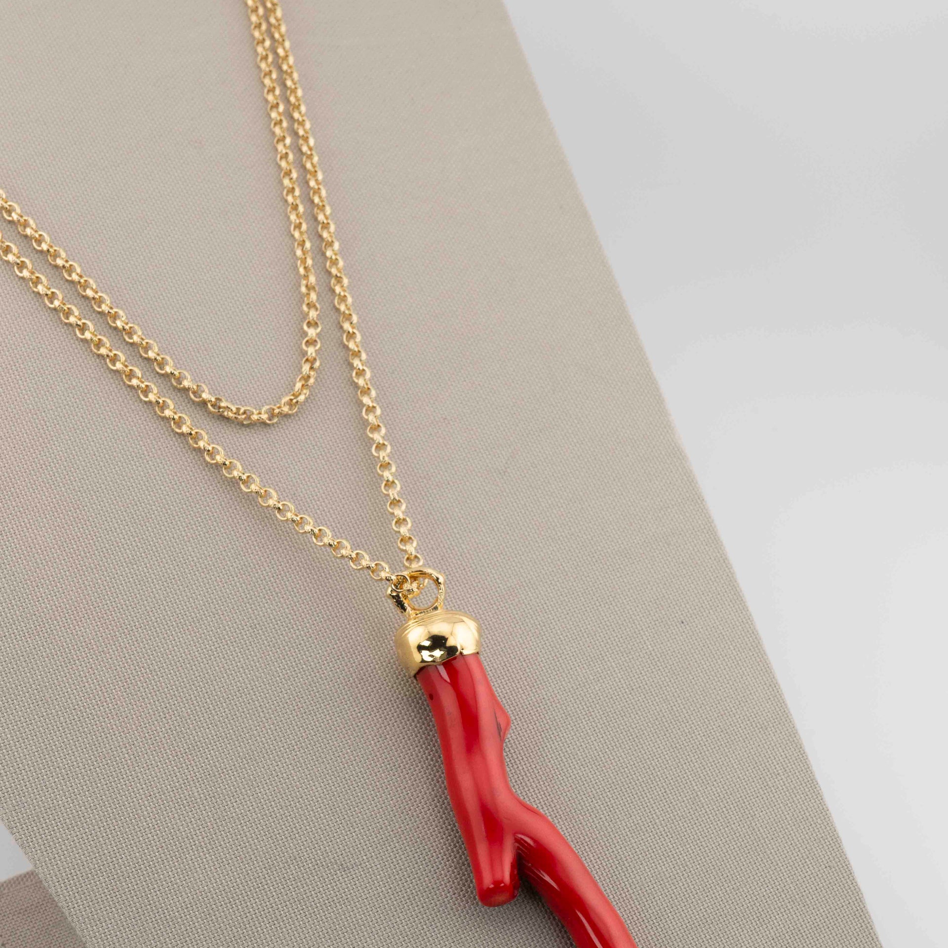 The Medusa Collection by MarriCortona combines the elegance of coral, the strength of white bronze and the shine of 18-karat gold, our coral pendant is a jewel that captures the essence of the sea and the refinement of the earth. The coral branch, sculpted by nature, harmoniously intertwines with the artistic fusion of bronze, made even more precious by the gold bath. Every detail of this pendant tells a story of beauty. A jewel that is not just an ornament, but a talisman of elegance and timeless charm.