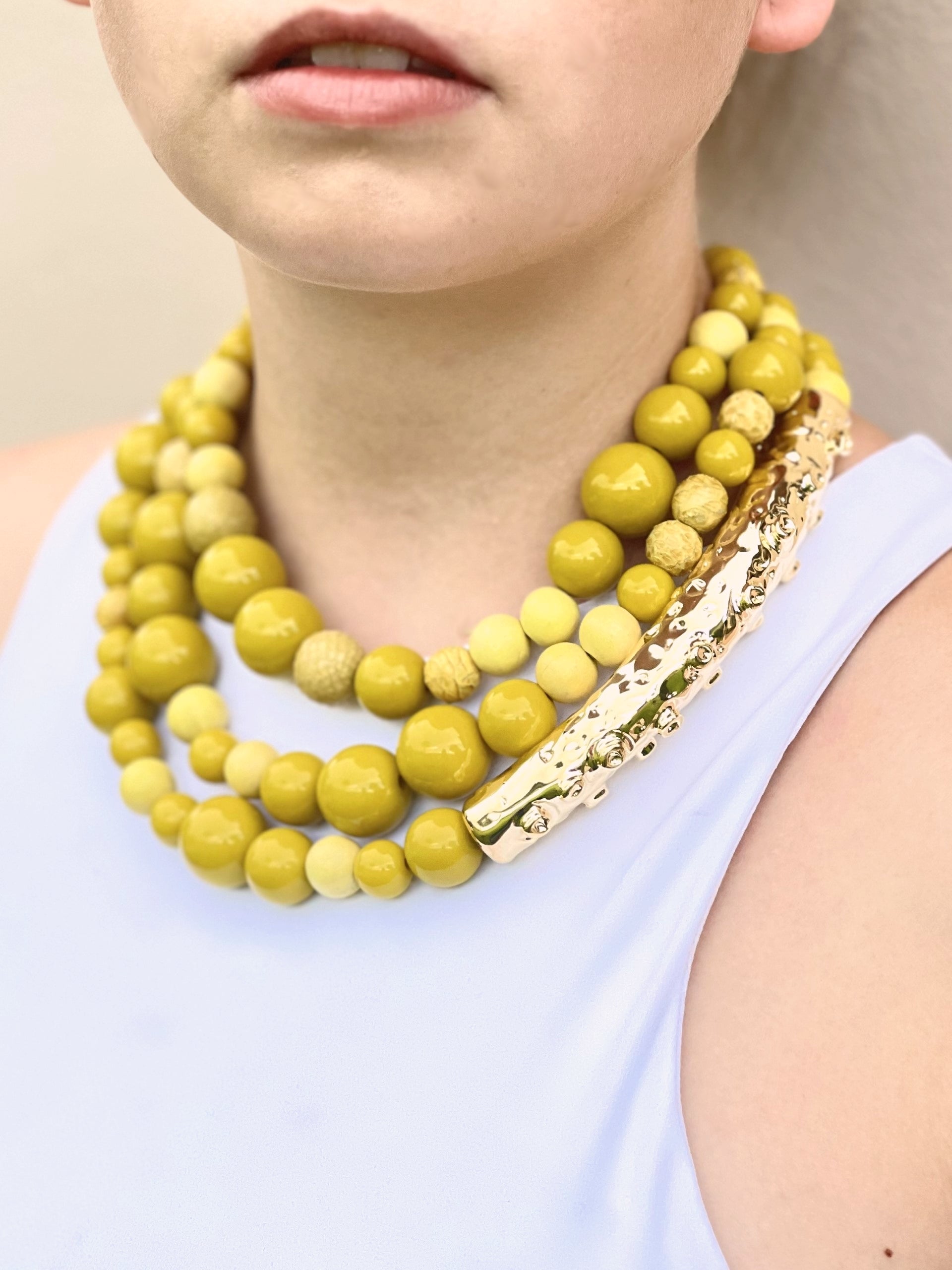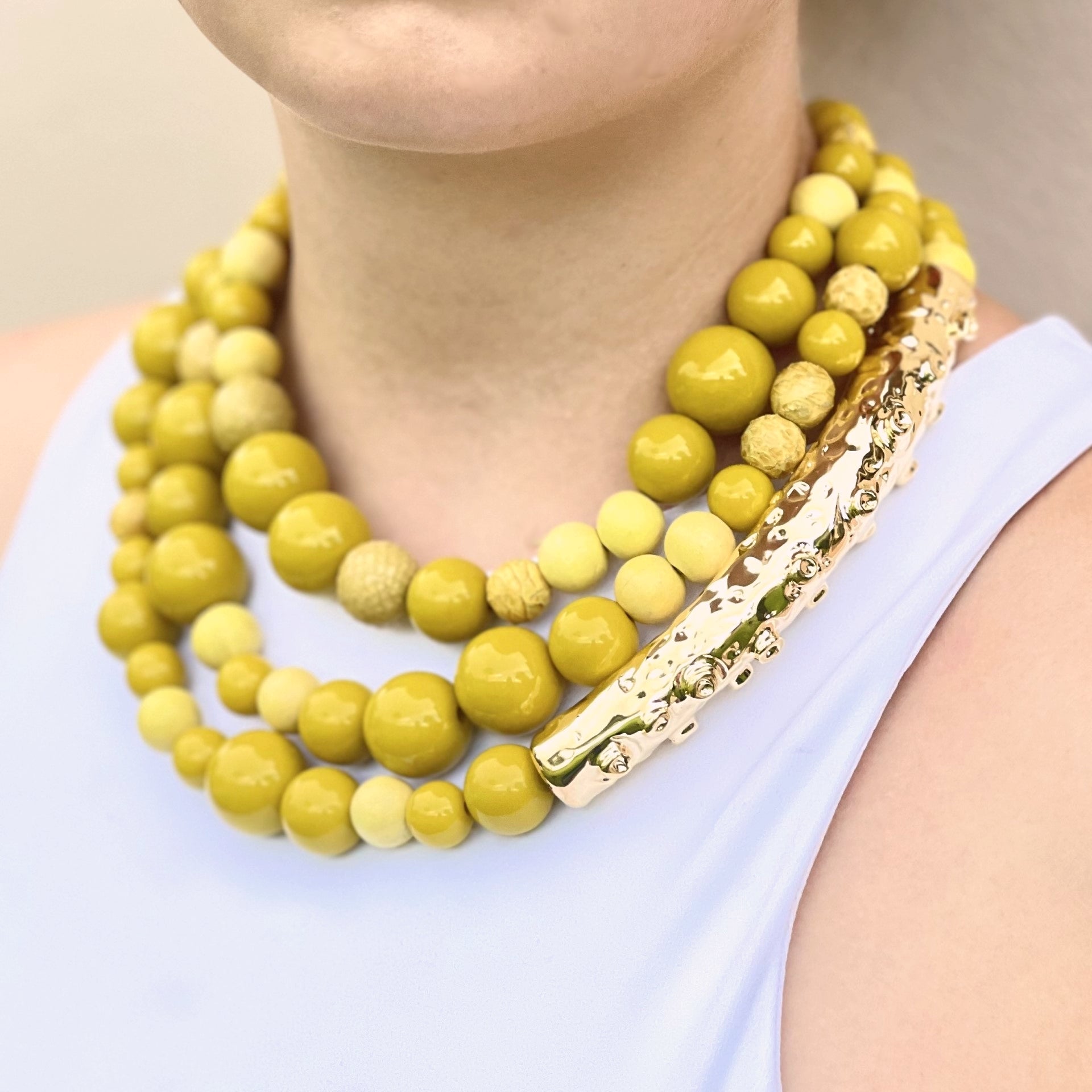 We create 18-karat gold-plated bronze jewelry, entirely handmade in Tuscany, using fine leathers such as crocodile and carefully selected semi-precious stones.