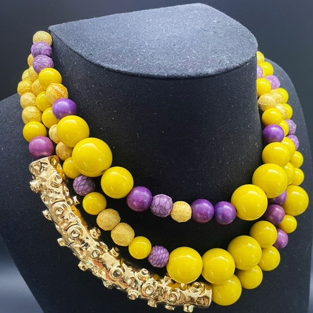 Octopus choker necklace by Marri Cortona , adjustable length. An asymmetrical bronze octopus tentacle element envelops genuine python leather, wood, and resin elements. Finished in 18-karat gold. Craftsmanship and Made in Italy craftsmanship blend together in a blend of romance and charm, making each necklace a true masterpiece, creating a dreamlike atmosphere and transporting you on a journey of emotions.