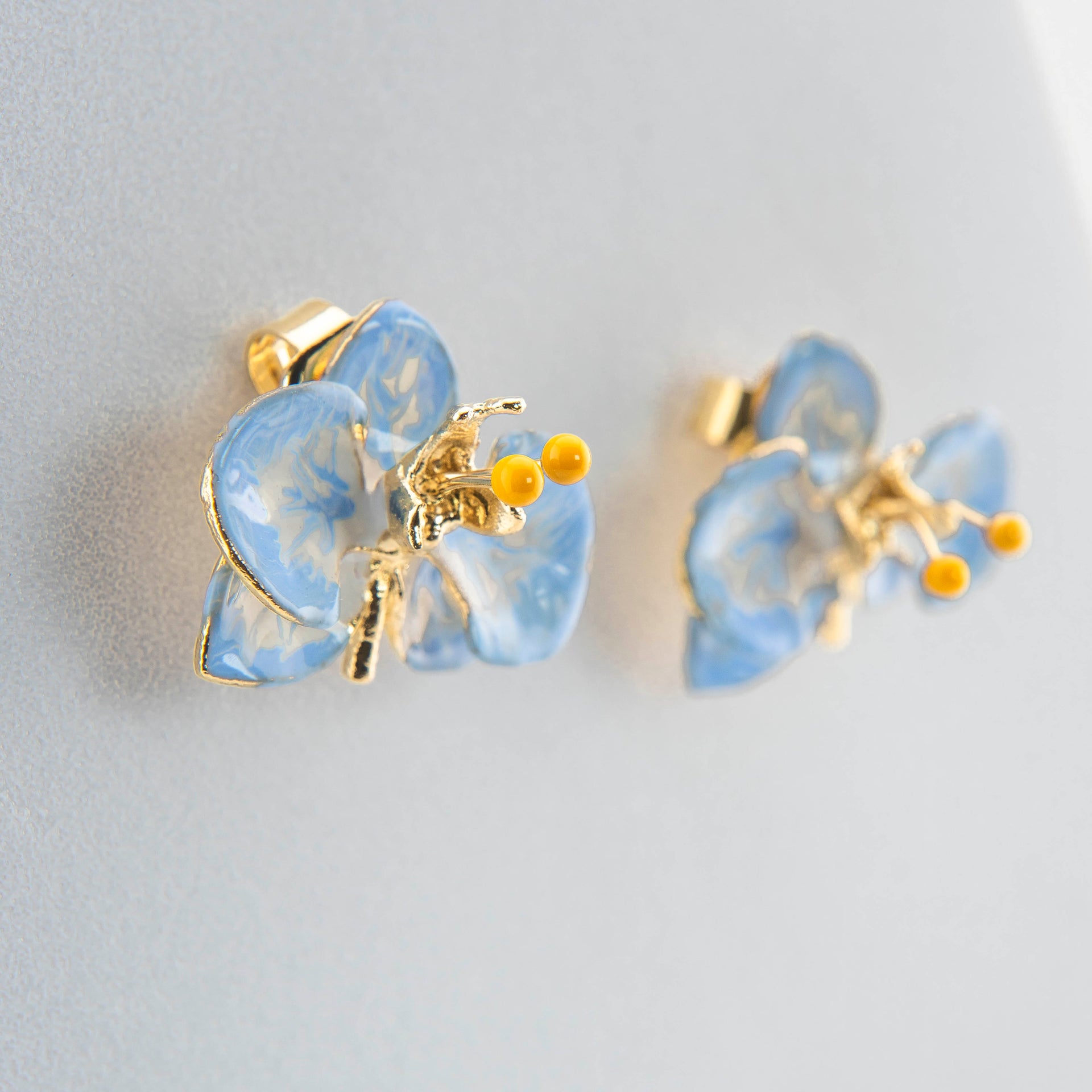 Handcrafted in bronze with an 18-carat gold plating, each piece is shaped using the traditional lost-wax casting technique, allowing every petal and curve to emerge with precision and harmony. Every pair is then hand-painted with ceramic enamel by our artisans, making each creation one of a kind — as no flower ever blooms the same way twice.