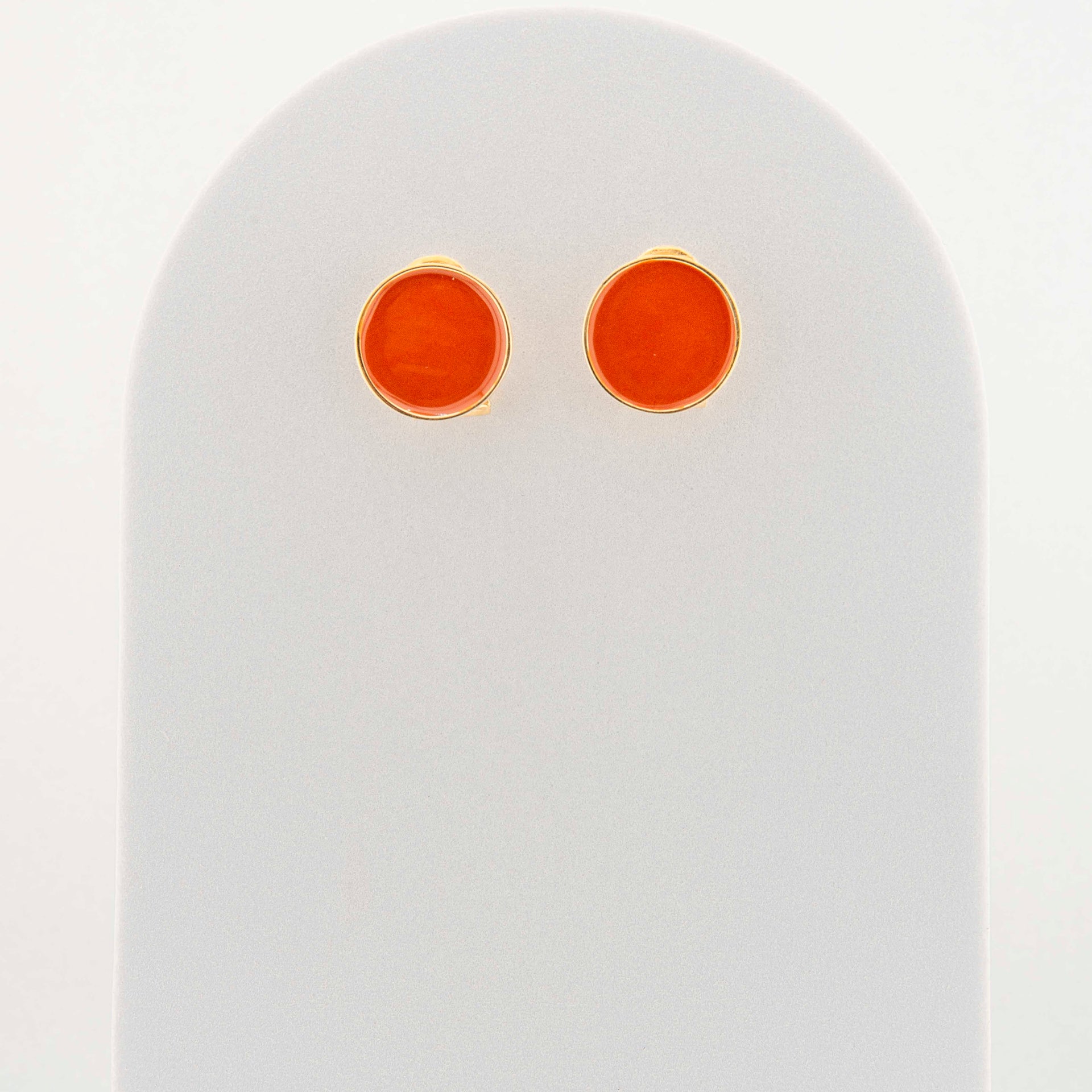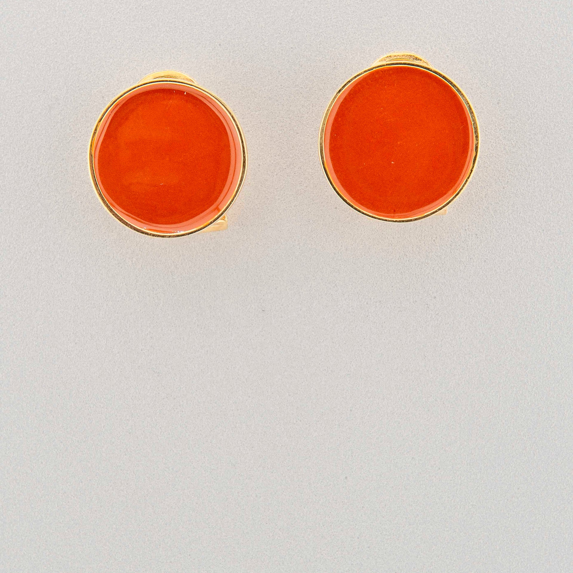 Made of bronze with 18k gold plating, these earrings stand out for their radiant metallic shine and the delicate shades of hand-painted ceramic enamel. Every pair is one of a kind — the result of an artisanal gesture that gives each hue its own personality and charm.