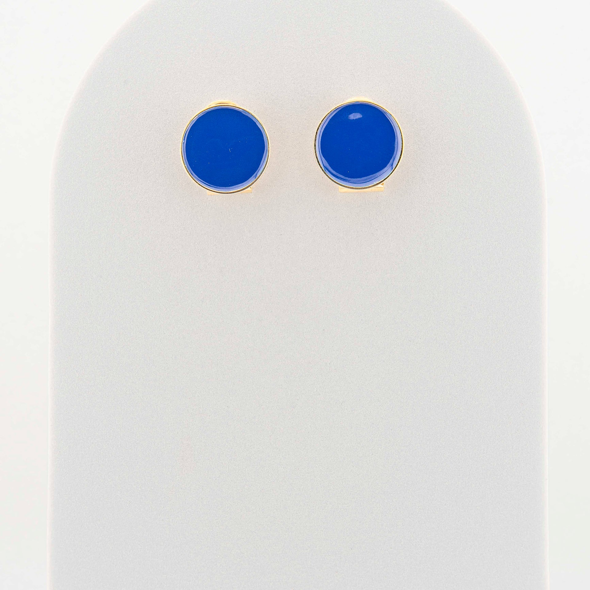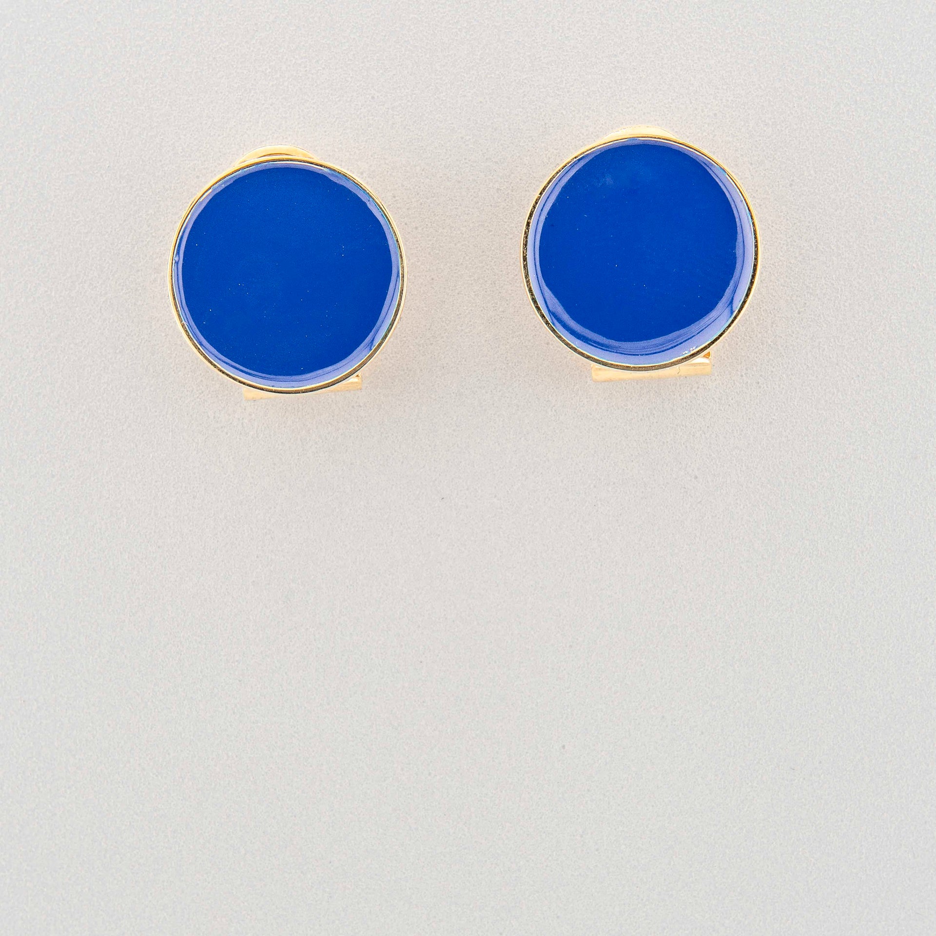 Made of bronze with 18k gold plating, these earrings stand out for their radiant metallic shine and the delicate shades of hand-painted ceramic enamel. Every pair is one of a kind — the result of an artisanal gesture that gives each hue its own personality and charm.