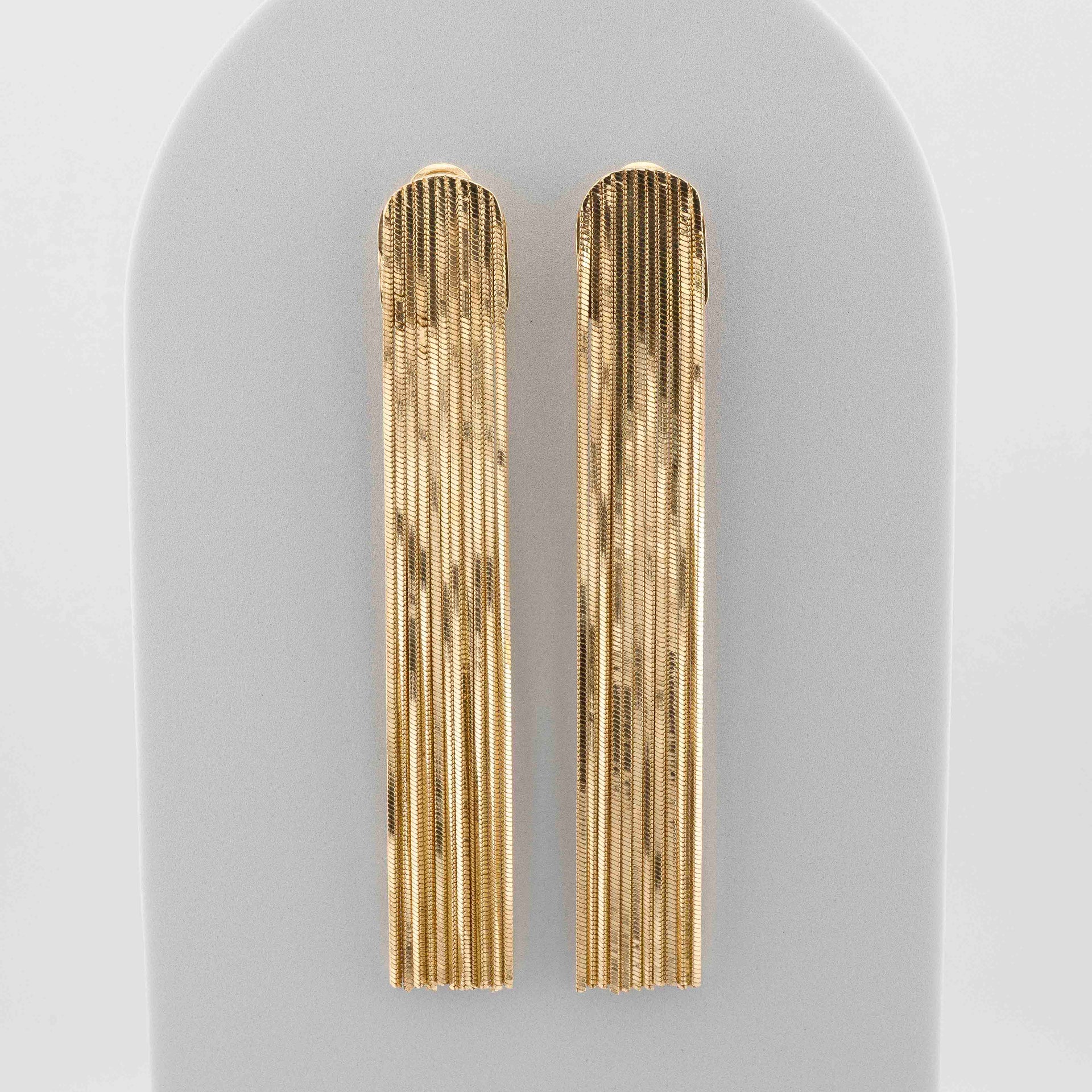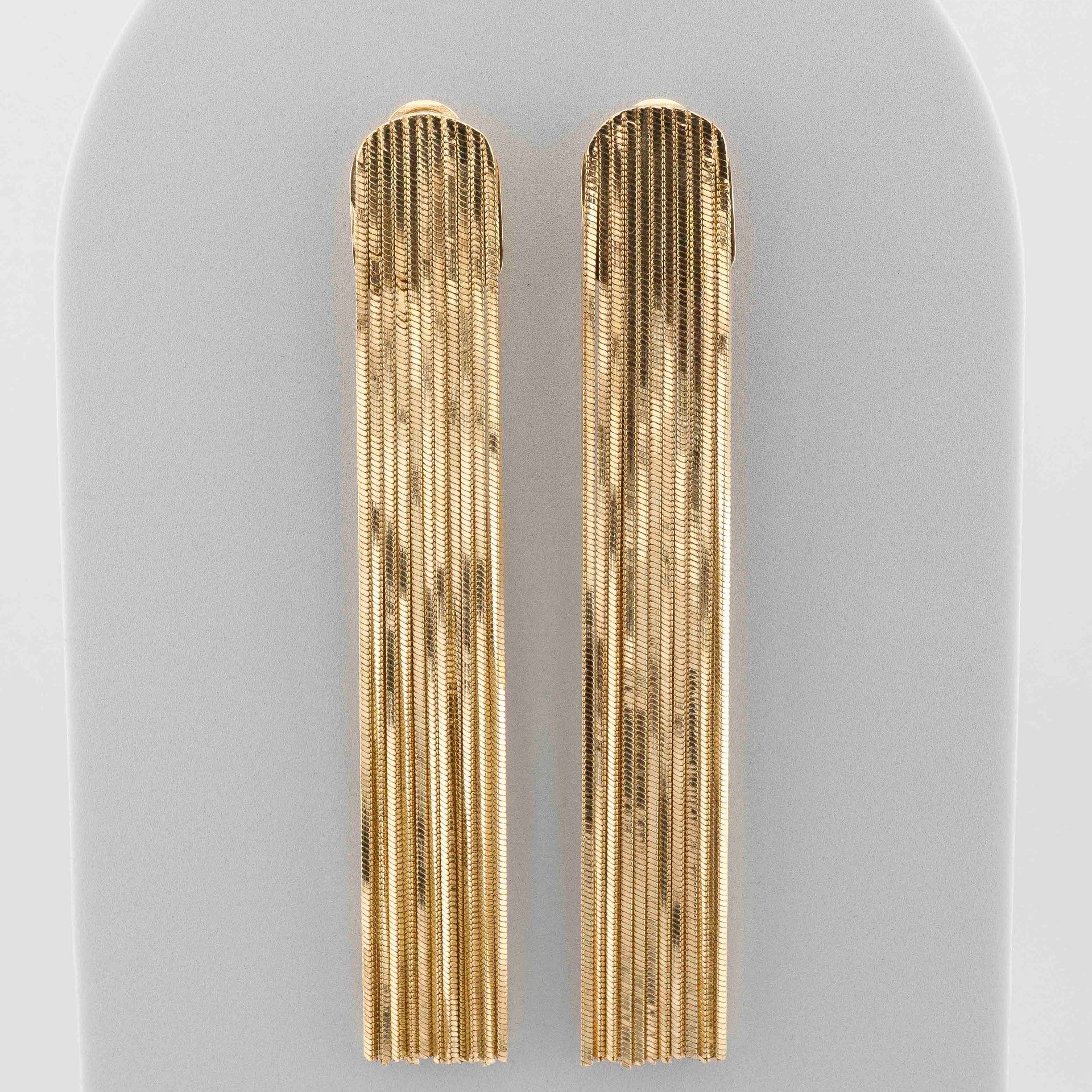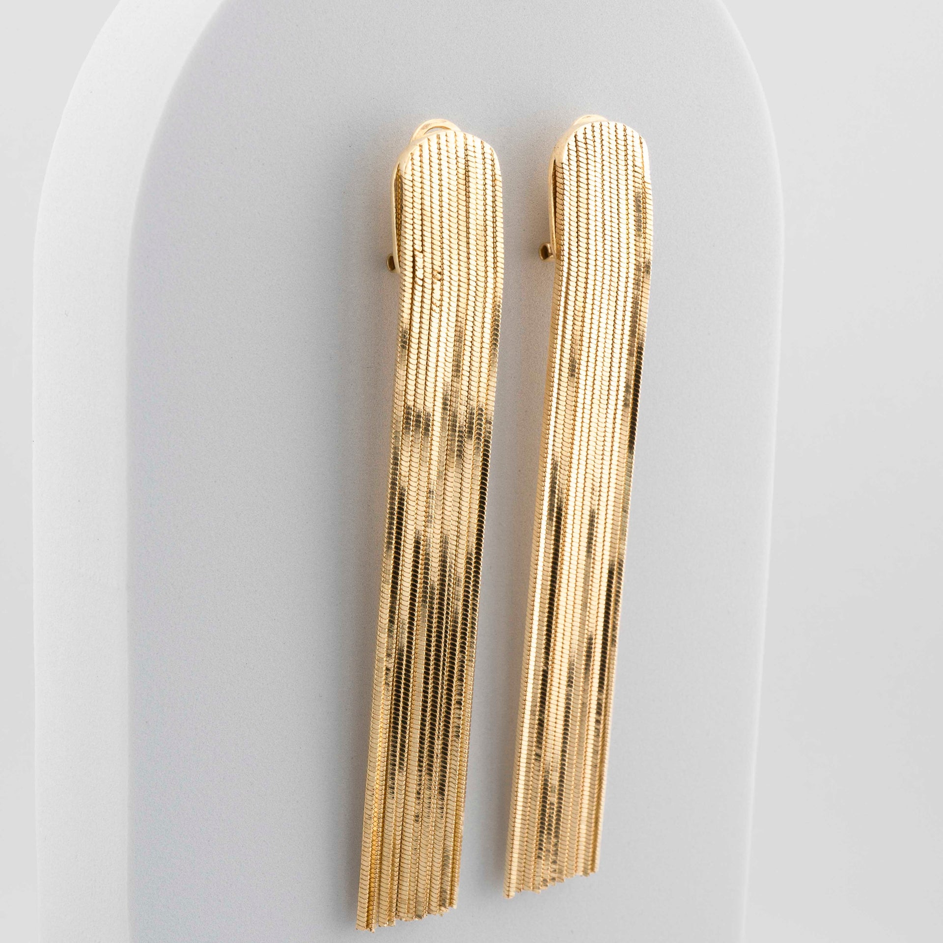 The golden fringes, measuring 10 cm, dance delicately as they frame the face, adding luminosity, elegance, and contemporary allure.