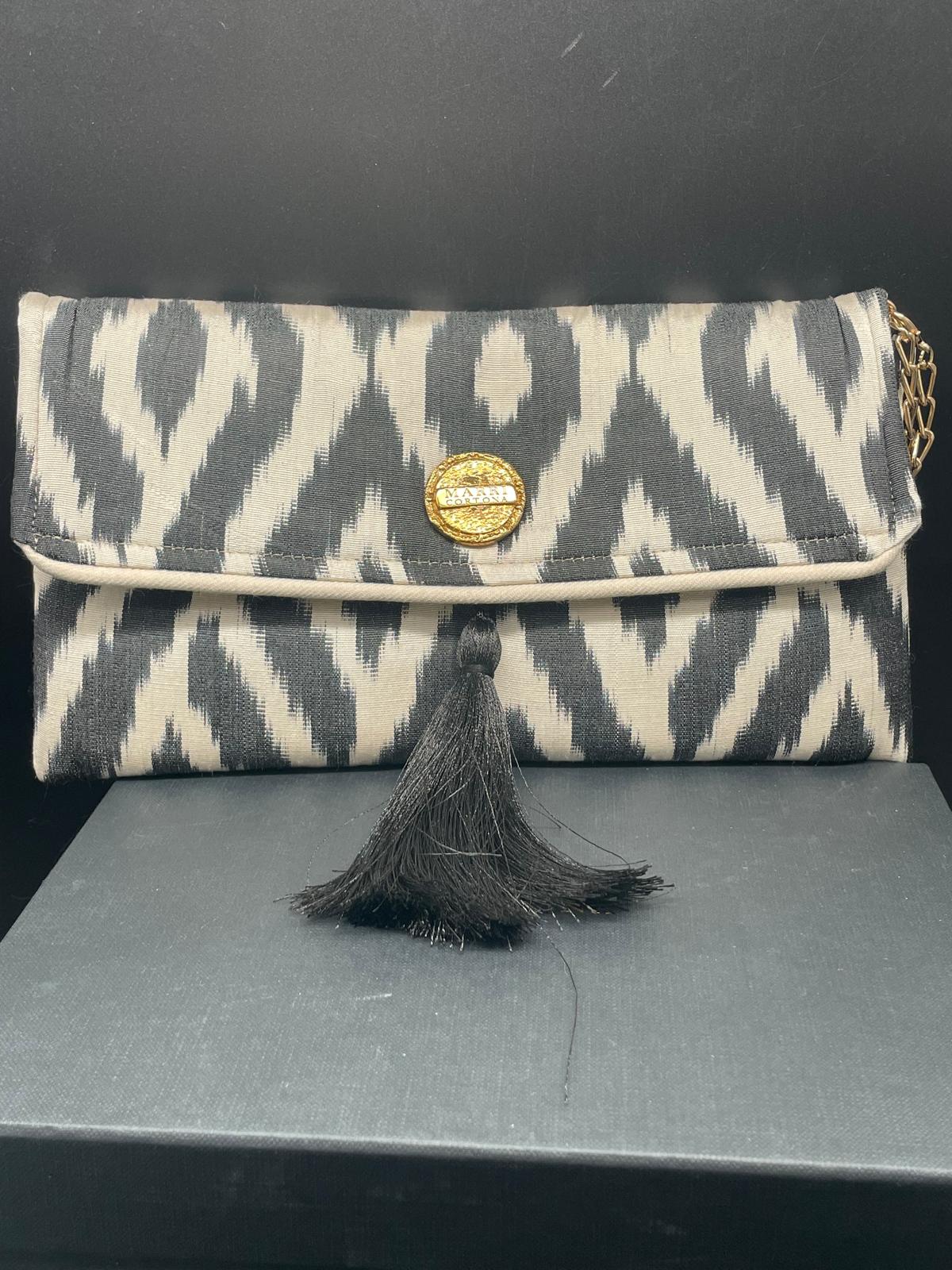 The Suzani Marri Cortona clutch bag, 100% silk with a silk satin lining, is a charming blend of tradition, craftsmanship, and style. It's the perfect choice for those who want to stand out with a high-quality accessory.