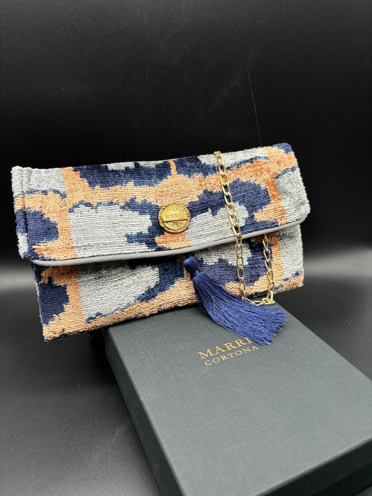The MarriCortona Suzani fabric clutch bag is 100% silk and lined with silk satin. The term "Suzani" comes from the Persian word "suzan," meaning "needle." This type of fabric is made using an ancient hand embroidery technique. The Suzani fabric clutch bag is a true piece of wearable art.