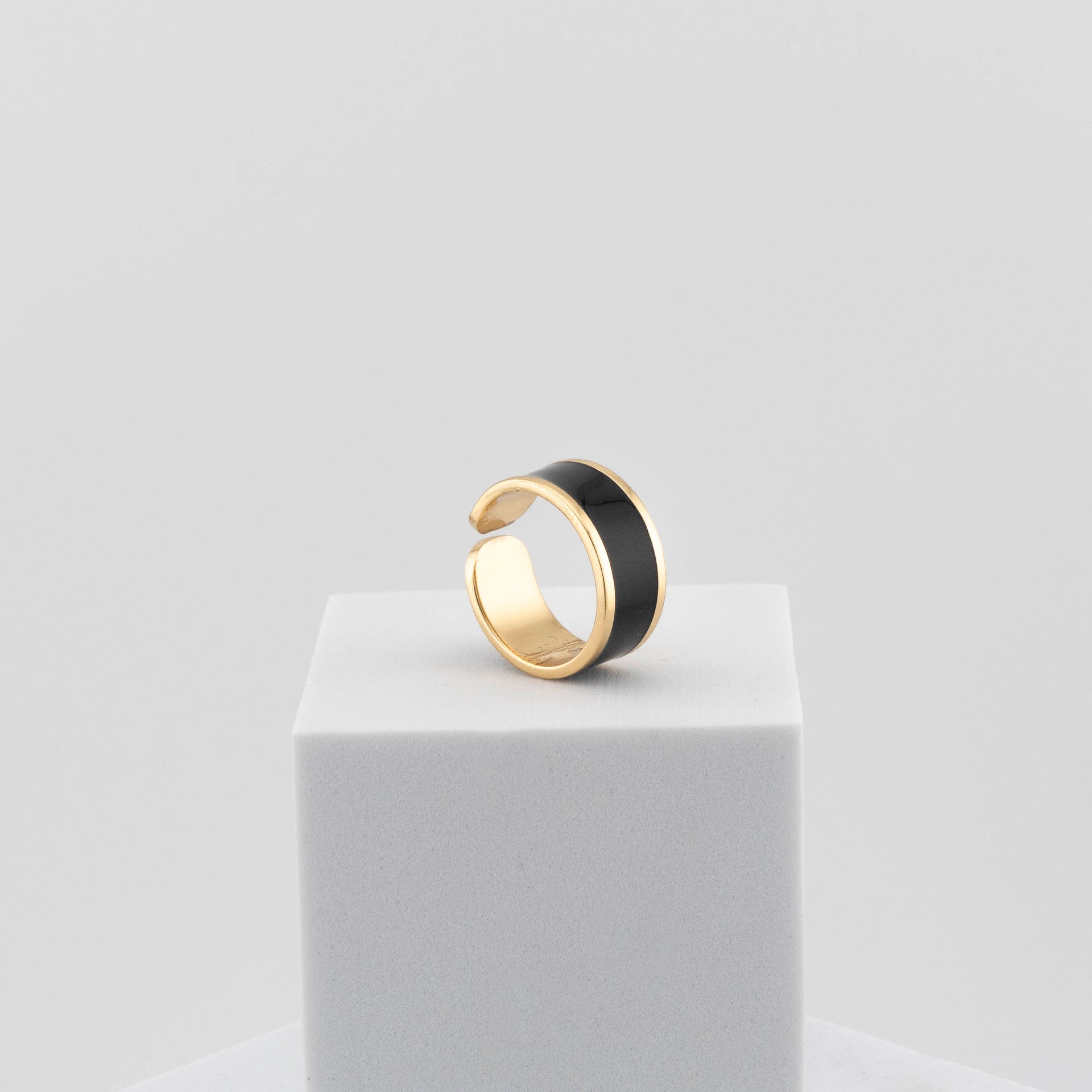 A fascia, regolabile, gli Anelli Smalto MarriCortona sono un'esplosione di luce . La luce dell'oro 18 carati e lo smalto Black rendono l'anello unico . Fatti a mano in Toscana, nel nostro laboratorio dalle mani sapienti dei nostri artigiani.