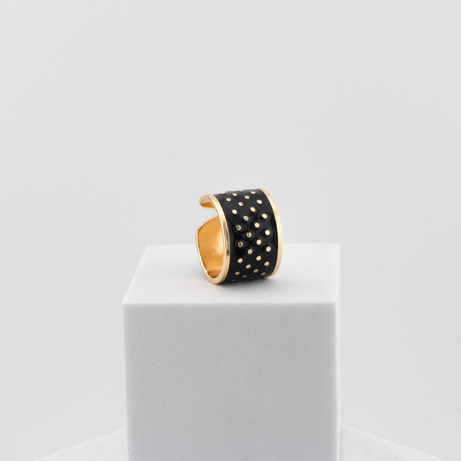 A fascia, regolabile, gli Anelli Smalto MarriCortona sono un'esplosione di luce . La luce dell'oro 18 carati e lo smalto Black & White rendono l'anello unico . Fatti a mano in Toscana, nel nostro laboratorio dalle mani sapienti dei nostri artigiani.
