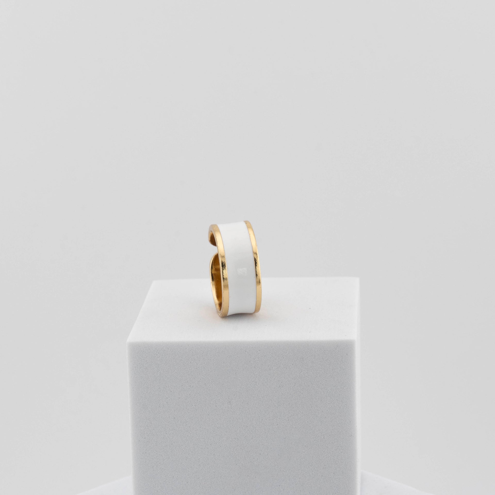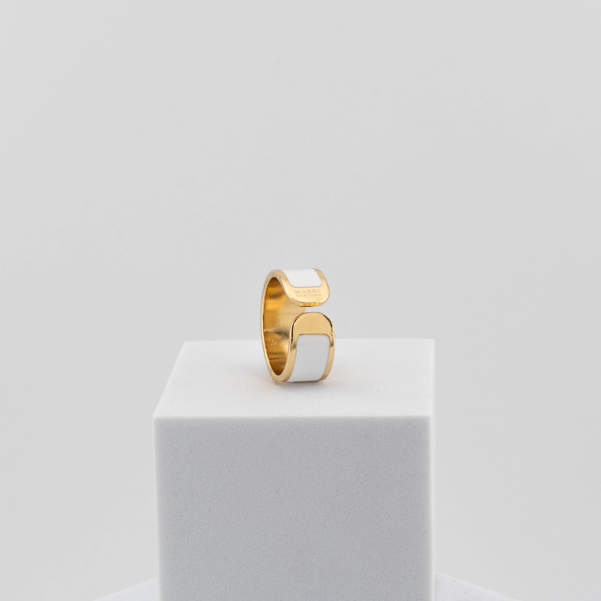 A fascia, regolabile, gli Anelli Smalto MarriCortona sono un'esplosione di luce . La luce dell'oro 18 carati e lo smalto White rendono l'anello unico . Fatti a mano in Toscana, nel nostro laboratorio dalle mani sapienti dei nostri artigiani.