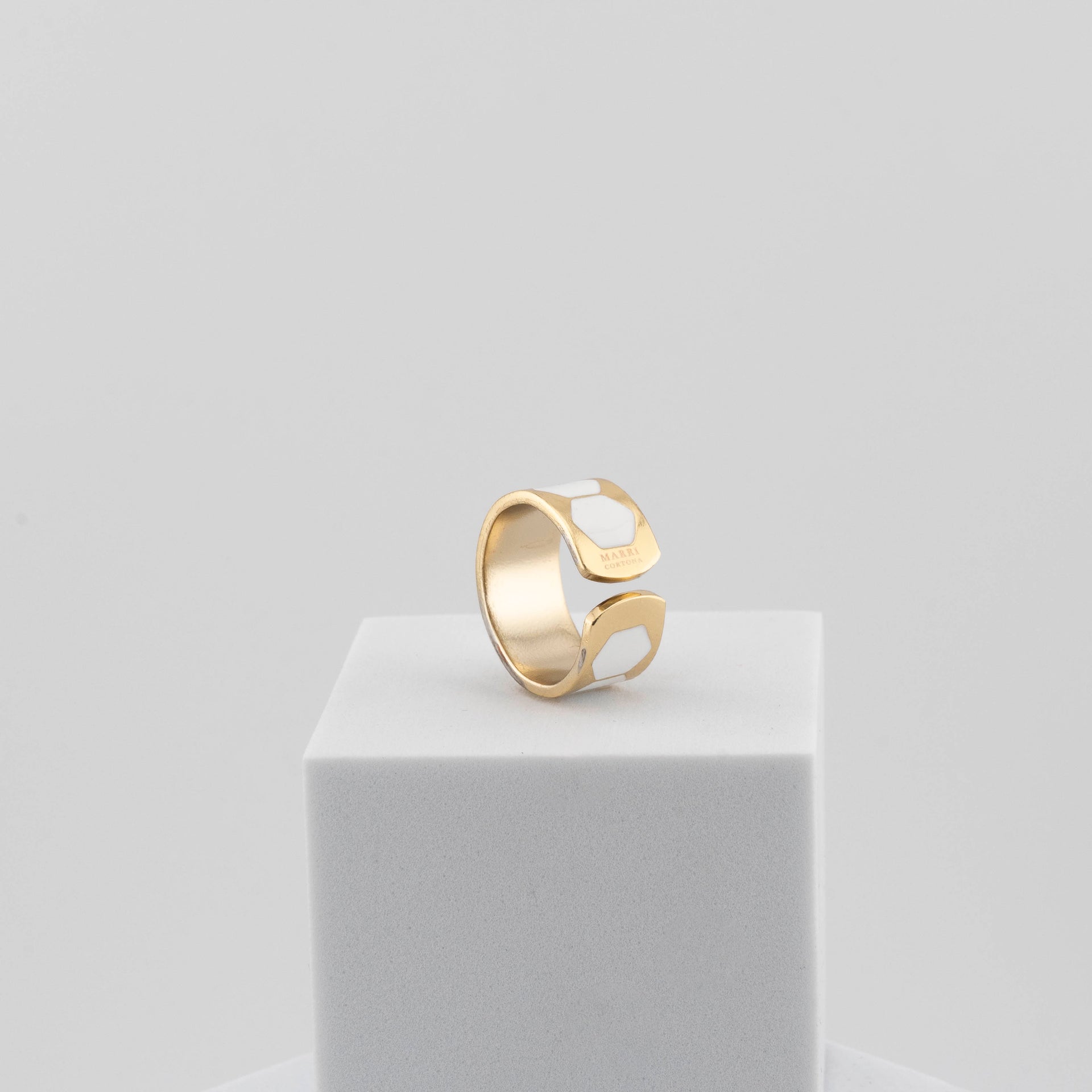 A fascia, regolabile, gli Anelli Smalto MarriCortona sono un'esplosione di luce . La luce dell'oro 18 carati e lo smalto Black & White rendono l'anello unico . Fatti a mano in Toscana, nel nostro laboratorio dalle mani sapienti dei nostri artigiani.