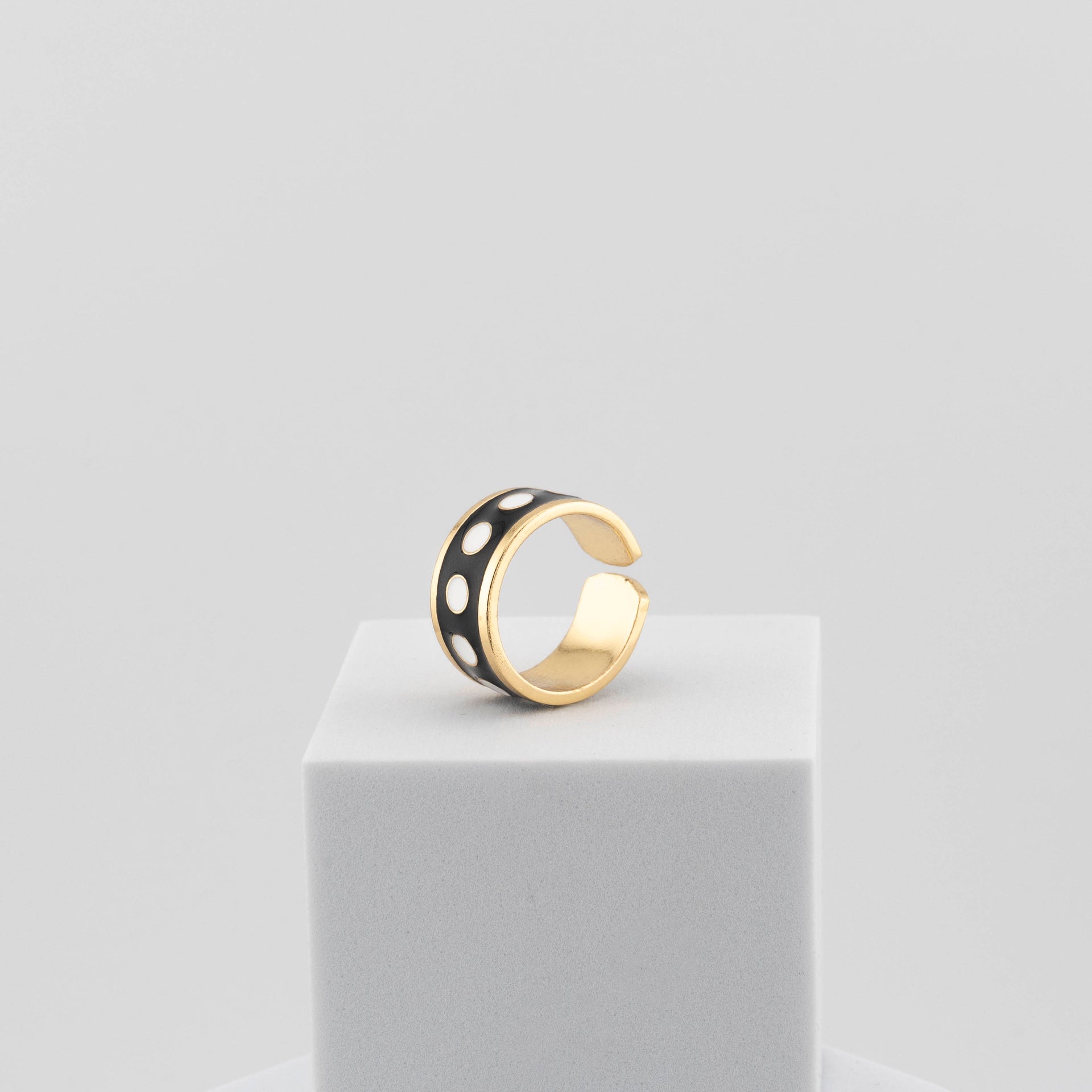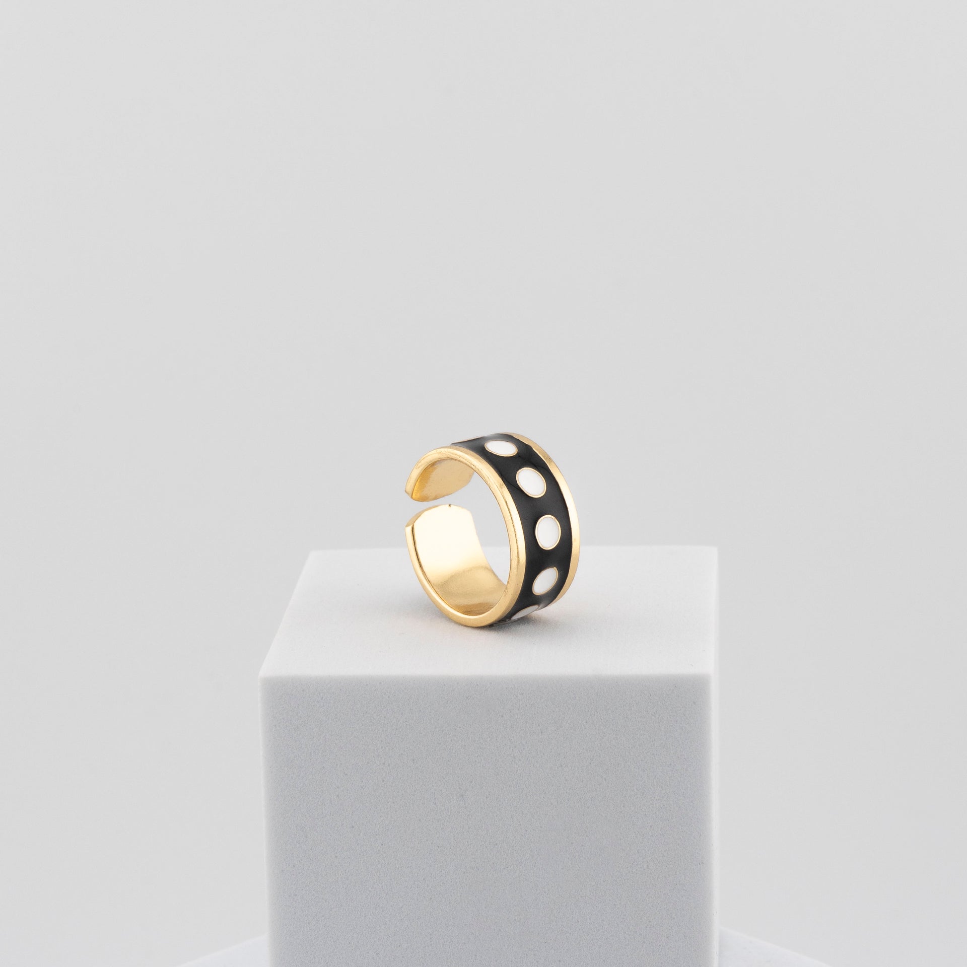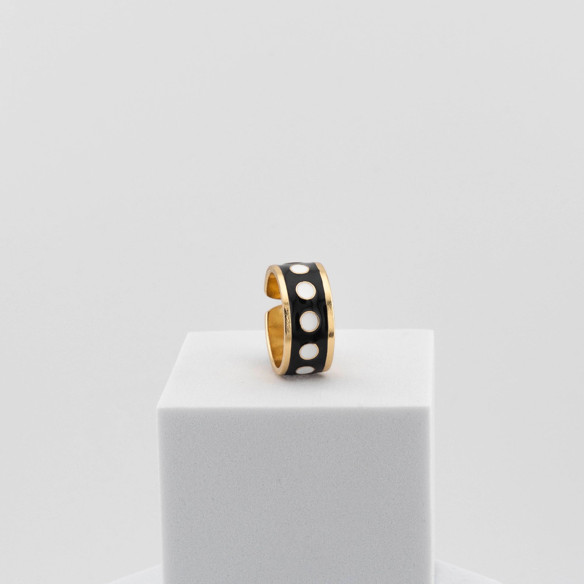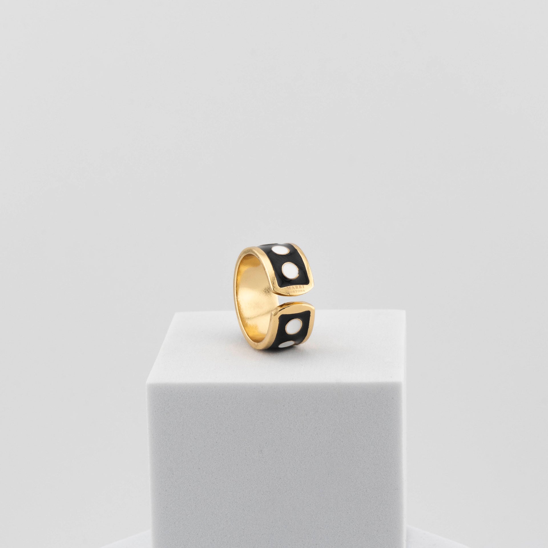 A fascia, regolabile, gli Anelli Smalto MarriCortona sono un'esplosione di luce . La luce dell'oro 18 carati e lo smalto Black & White rendono l'anello unico . Fatti a mano in Toscana, nel nostro laboratorio dalle mani sapienti dei nostri artigiani.