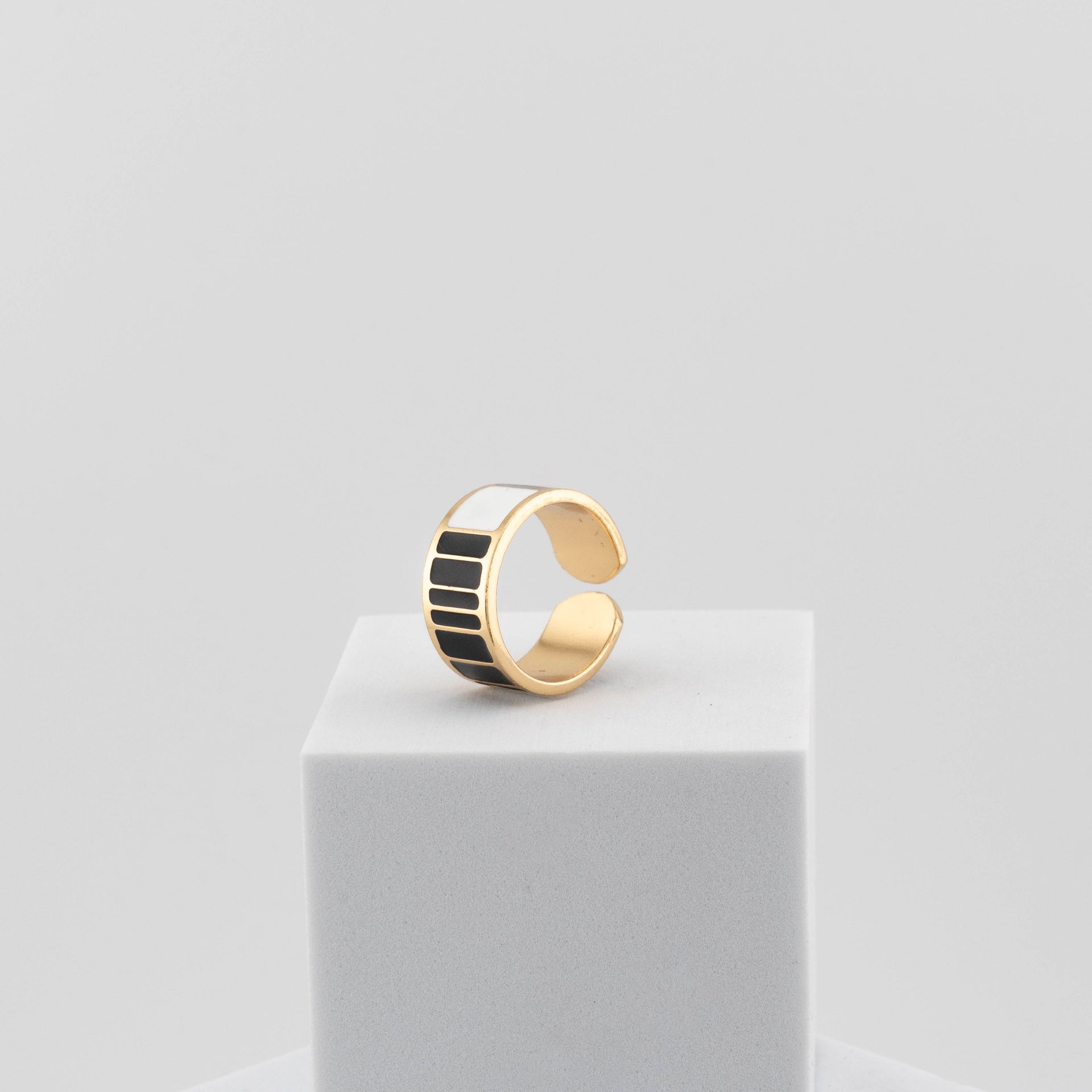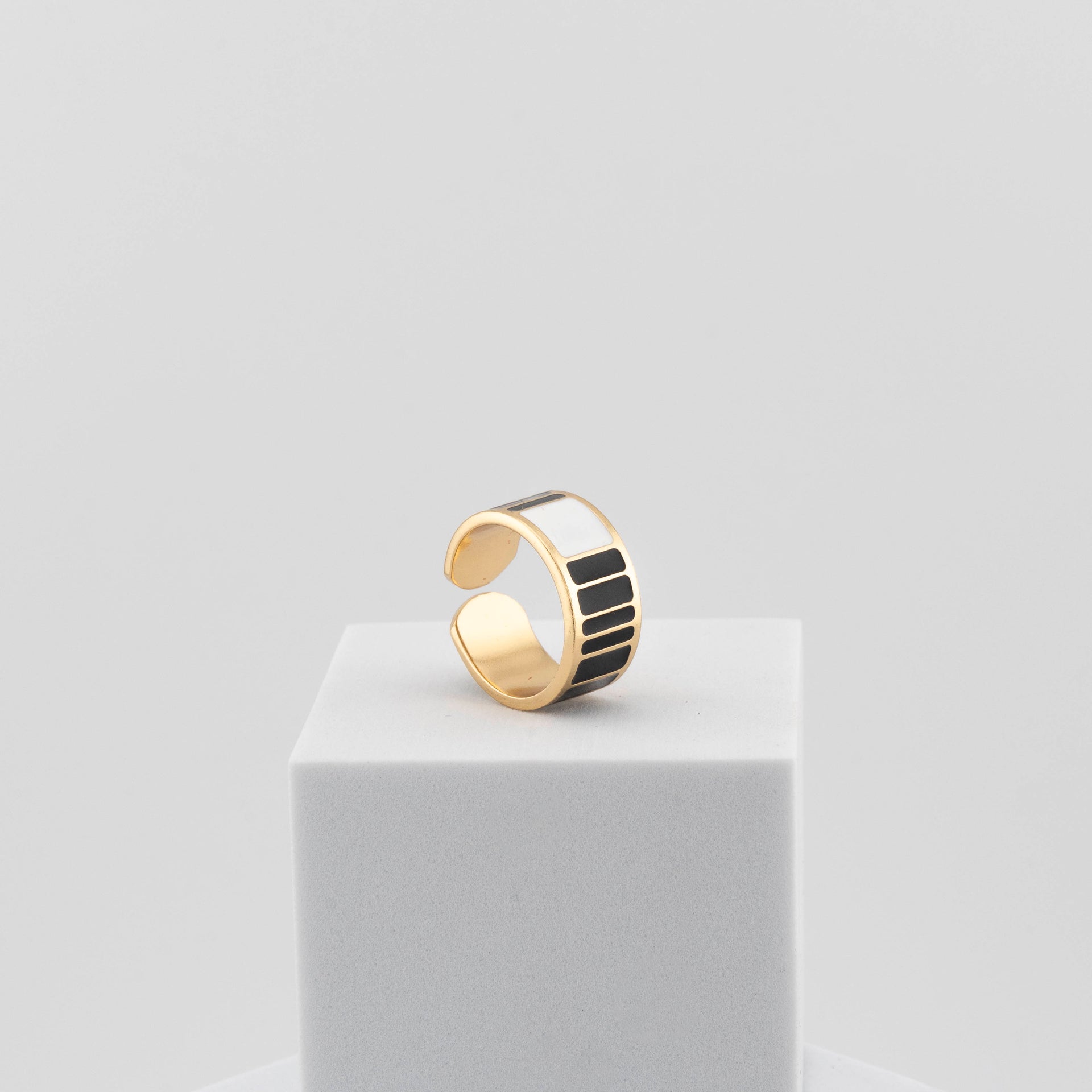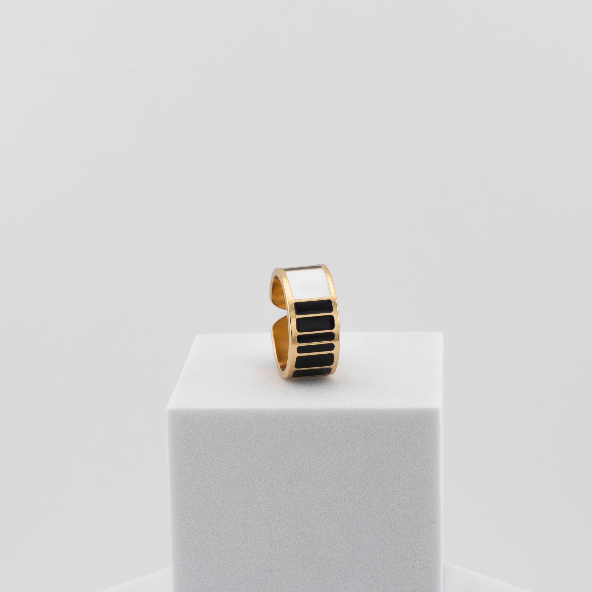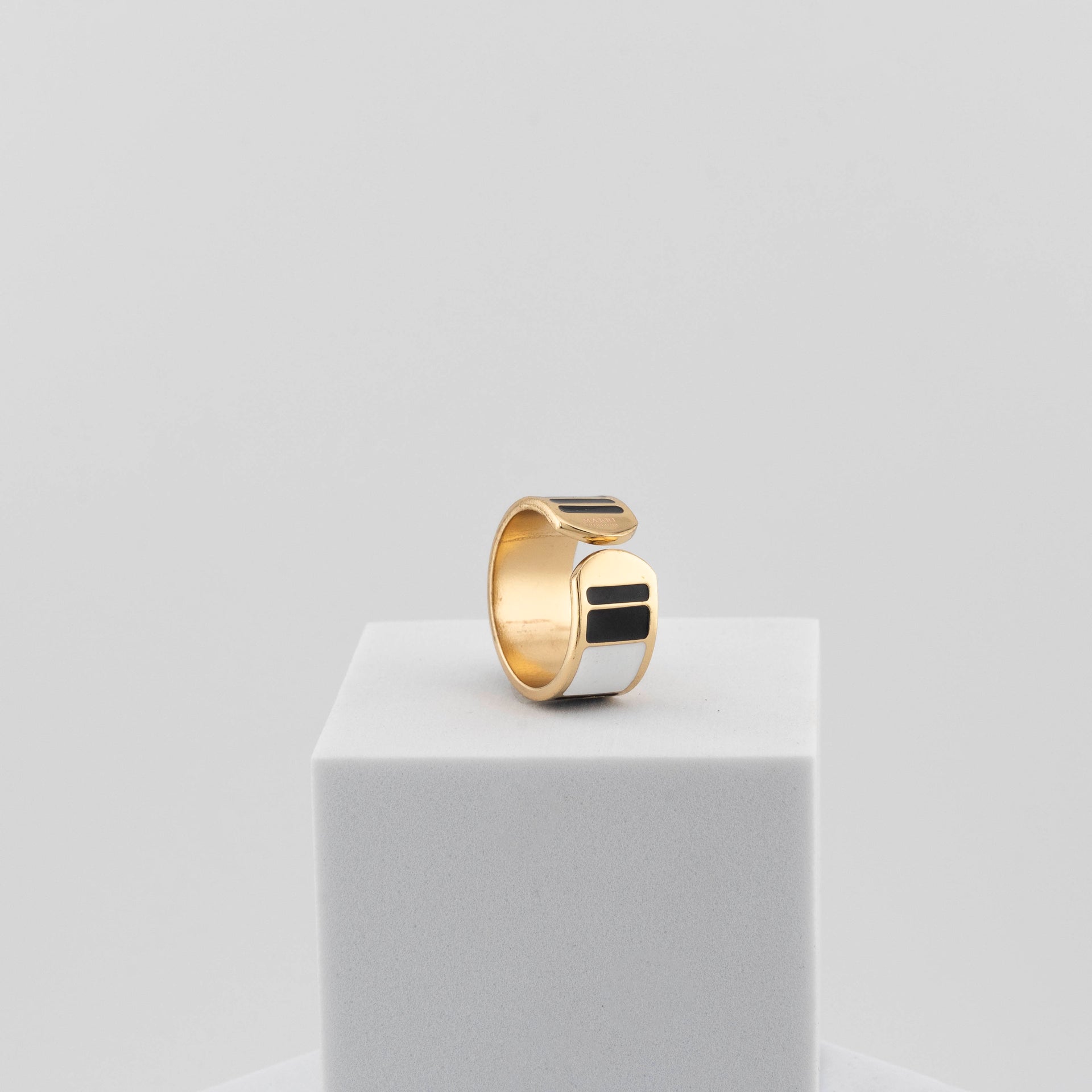 A fascia, regolabile, gli Anelli Smalto MarriCortona sono un'esplosione di luce . La luce dell'oro 18 carati e lo smalto Black & White rendono l'anello unico . Fatti a mano in Toscana, nel nostro laboratorio dalle mani sapienti dei nostri artigiani.