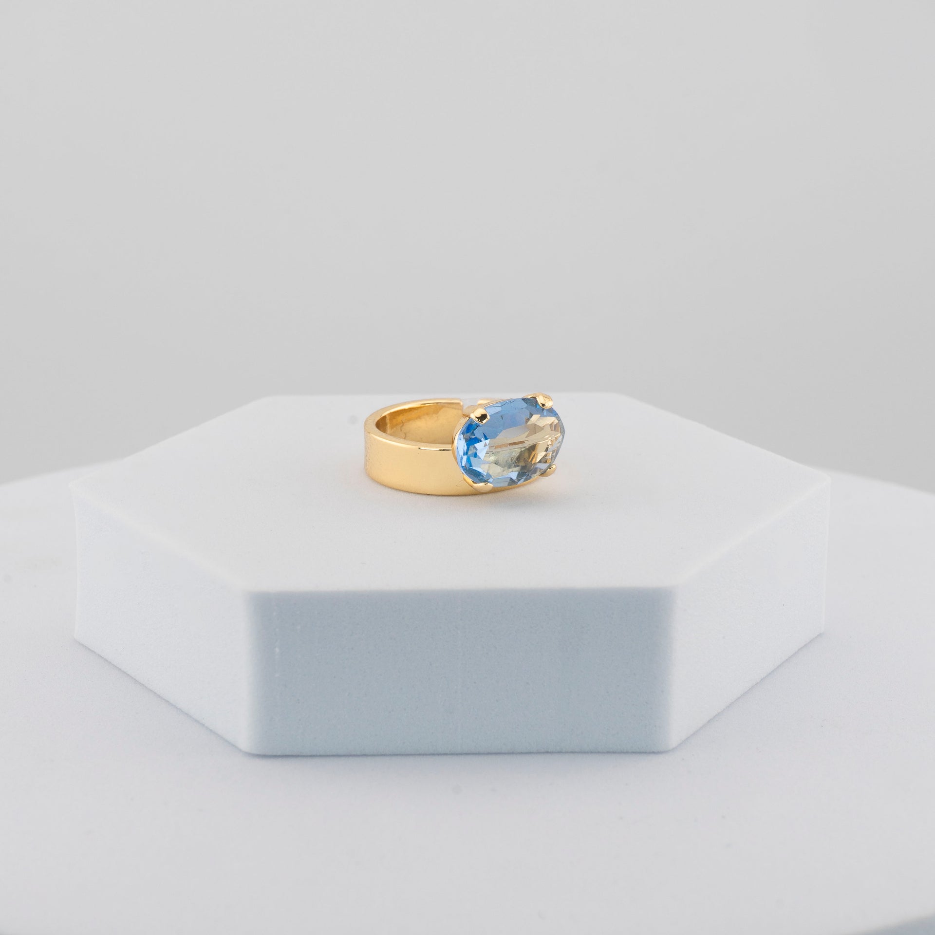 L'anello Cristallo MarriCortona a fascia dal design contemporaneo, con una pietra ovale incastonata in modo asimmetrico cattura la luce da ogni angolazione. Realizzato a mano in Toscana dai nostri maestri artigiani, questo gioiello unisce eleganza e creatività, permettendoti di giocare con i colori e le combinazioni. La sua versatilità consente di abbinarlo ad altri anelli della stessa linea, creando una fascia larga a doppia pietra sempre diversa e unica, riflesso del tuo stile e della tua personalità.