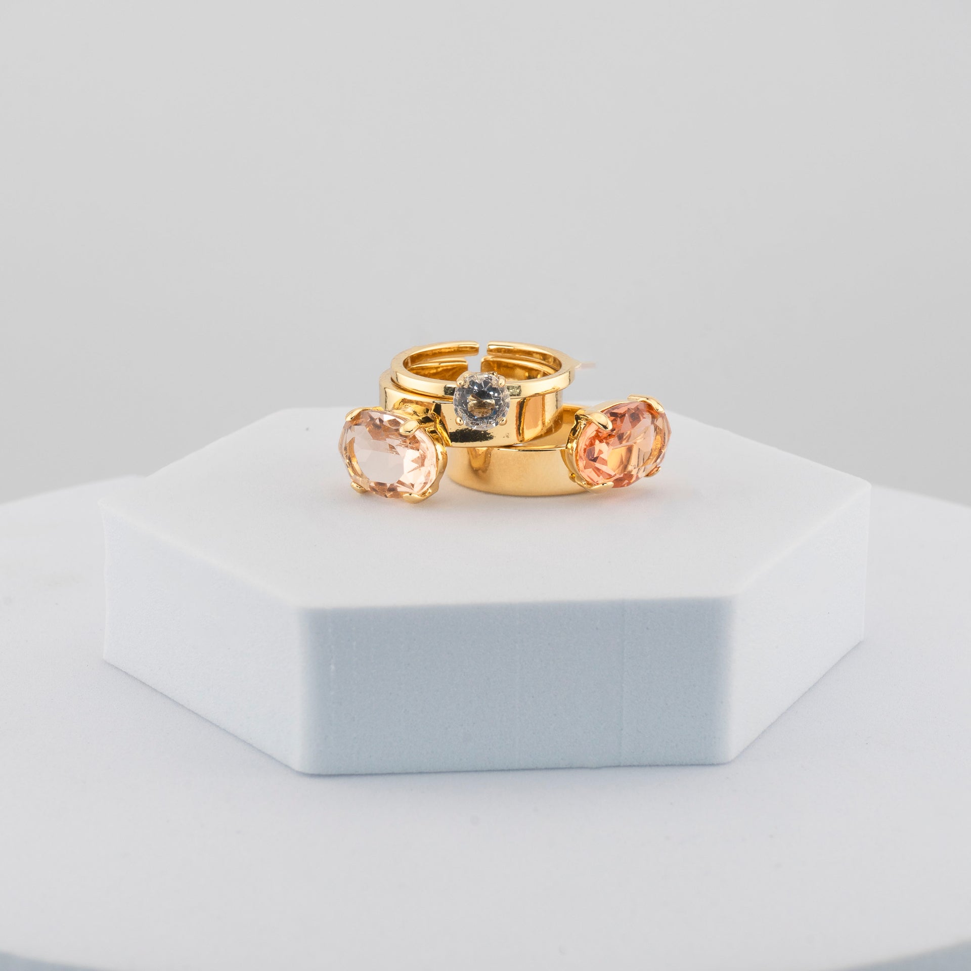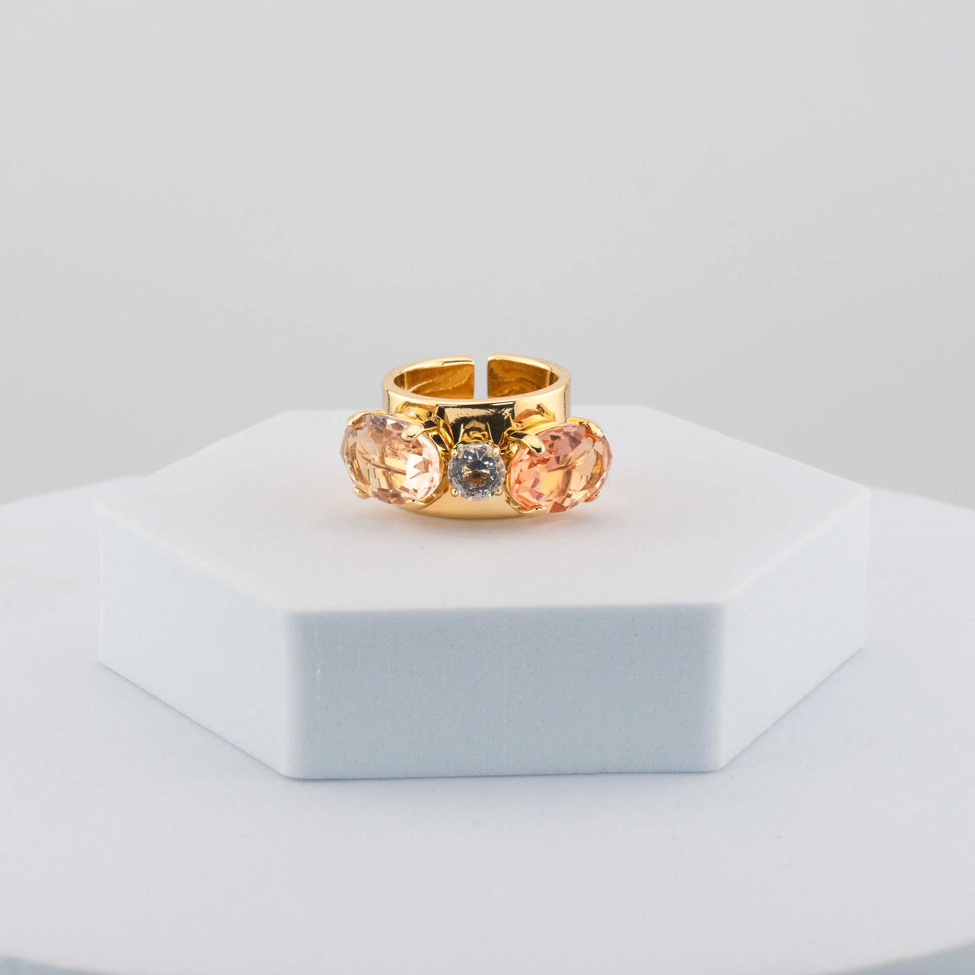 L'Anello Cristallo 'Trilogy' MarriCortona sono tre anelli uniti in un equilibrio perfetto: due cristalli ovali che incorniciano un tondo centrale.