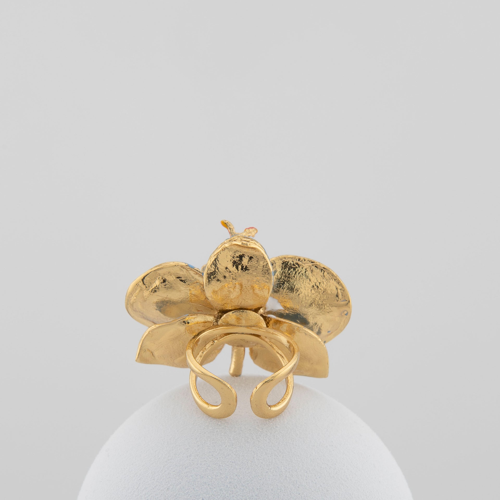 Ogni anello viene dipinto a mano con smalto ceramico, rendendo ogni pezzo diverso e irripetibile, come un fiore  — un piccolo frammento di artigianalità autentica.
