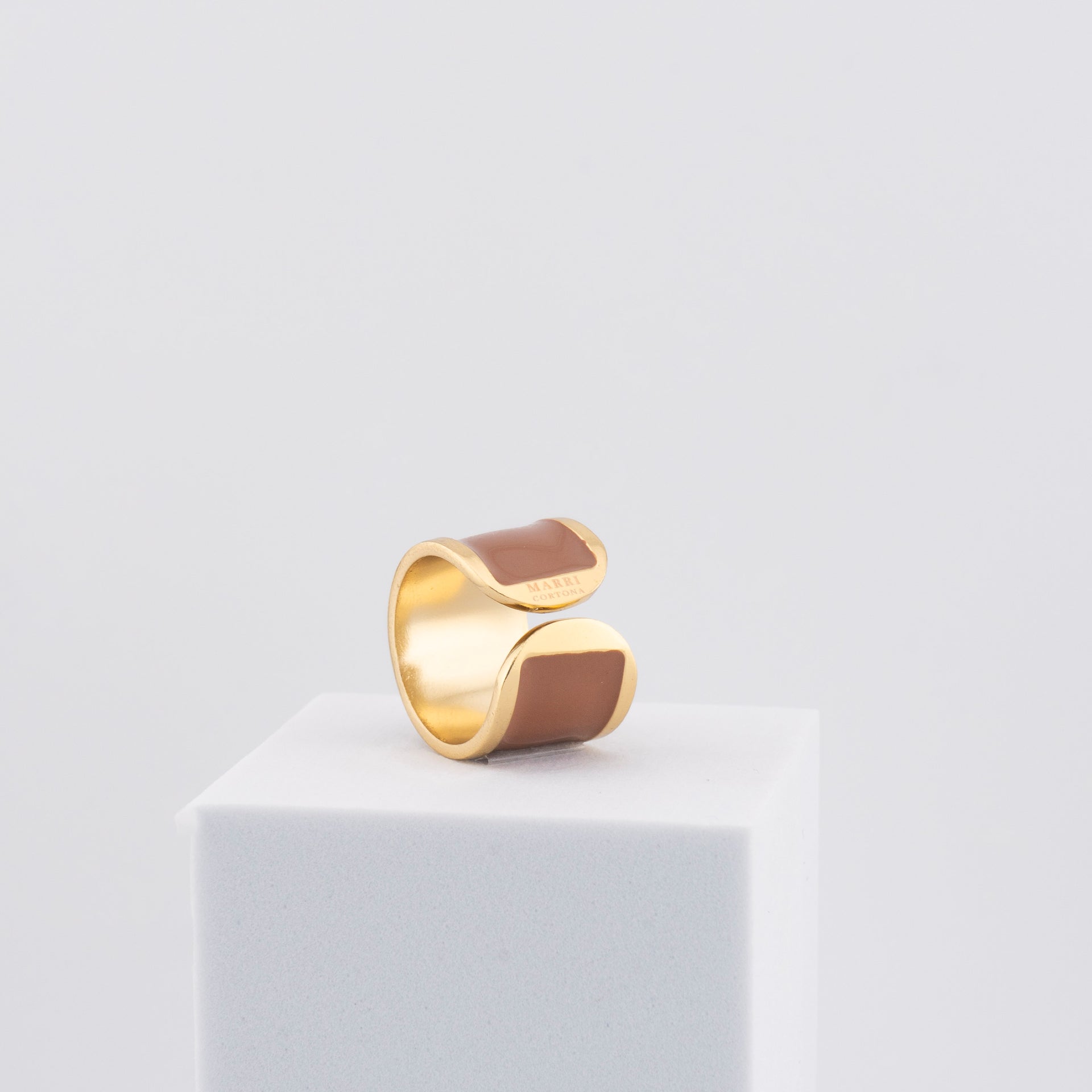 L’Anello a Fascia nasce da un disegno esclusivo MarriCortona e viene realizzato artigianalmente in Toscana con lavorazione su lastra di bronzo, una tecnica che permette di ottenere forme morbide, armoniose e perfettamente rifinite.