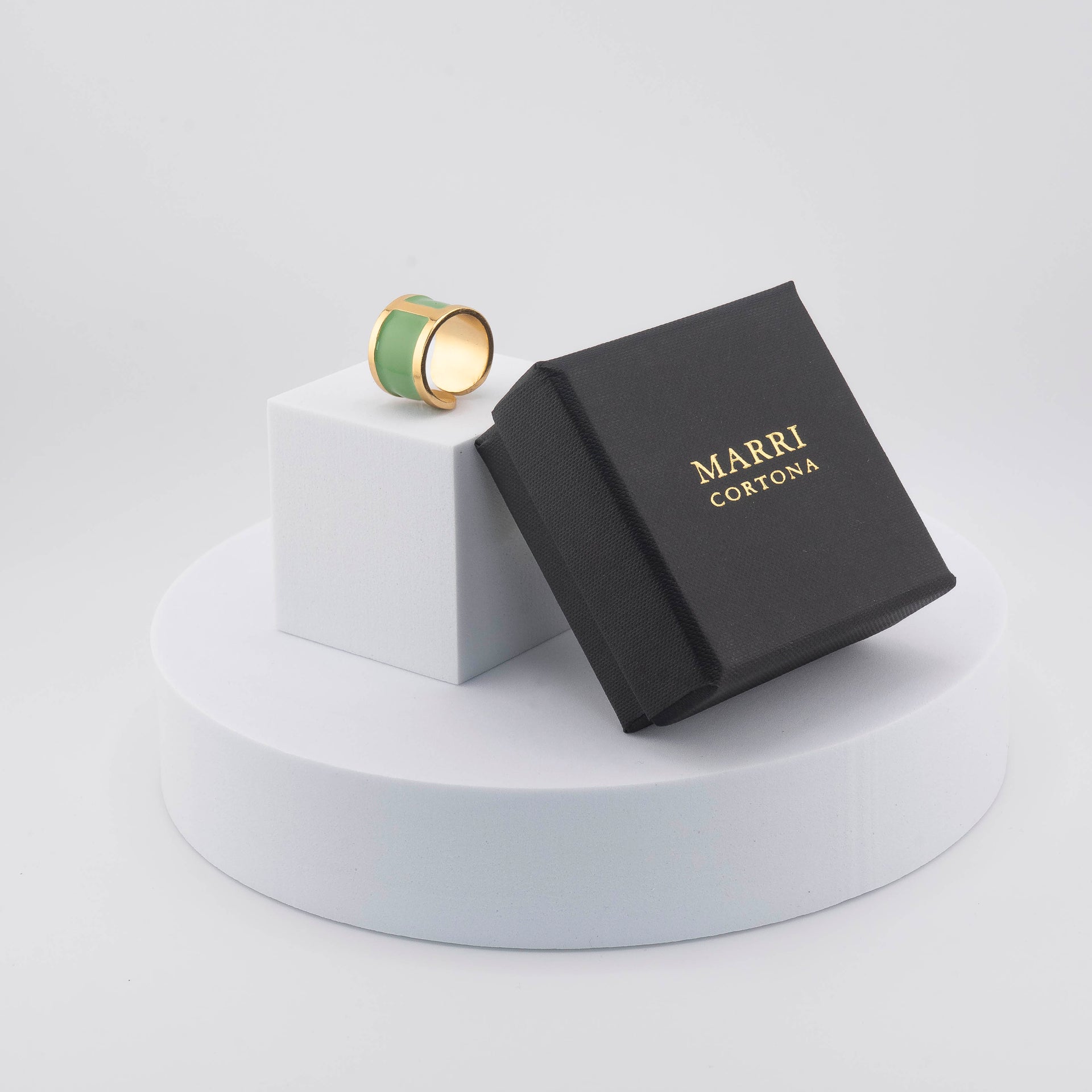 Gli Anelli Smalto Marri Cortona sono un’esplosione di luce e colore, dove la brillantezza dell’oro 18 carati incontra la vivacità dello smalto ceramico dipinto a mano.