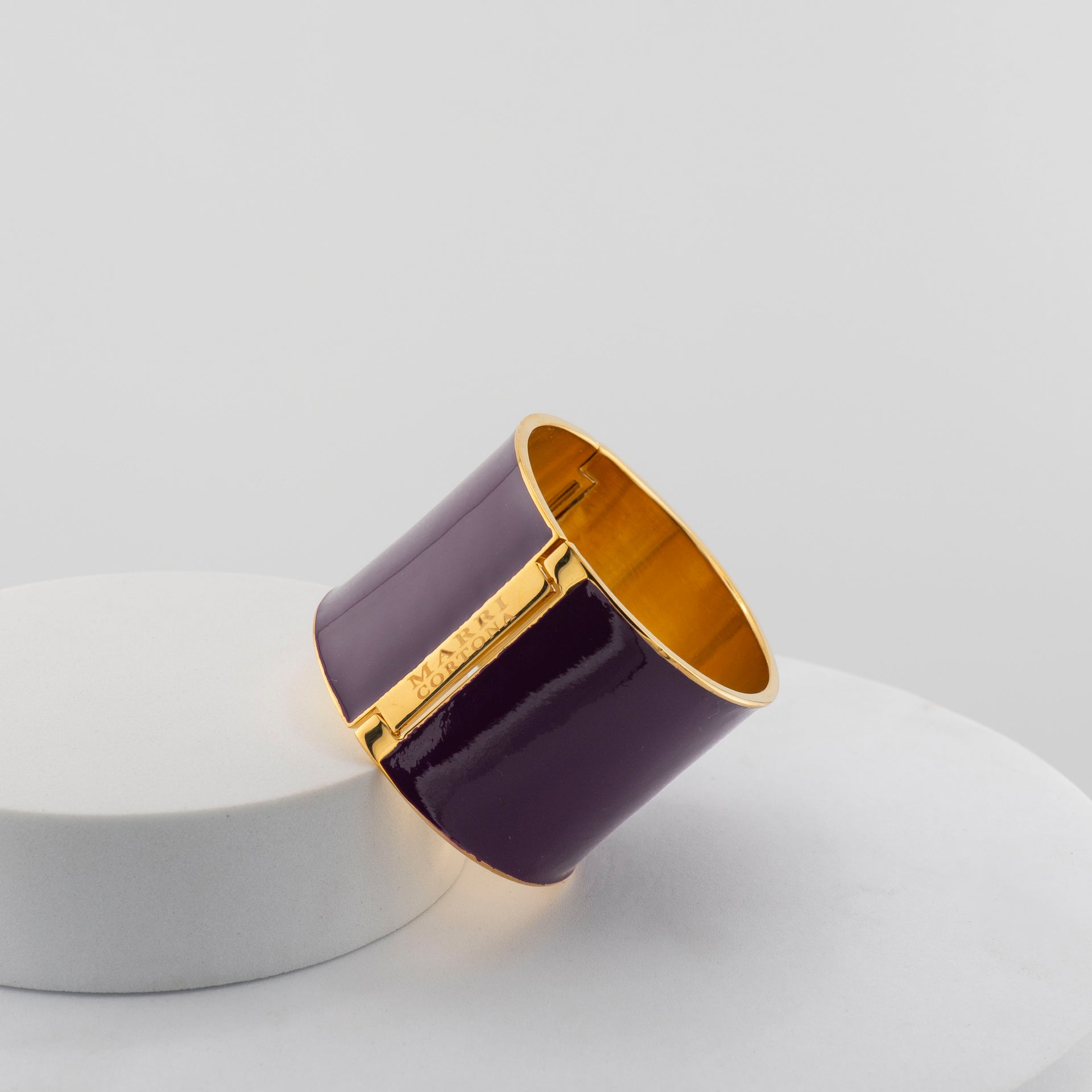 Il Bracciale Scatto è realizzato in bronzo bianco con bagno oro 18 carati, chiusura a scatto, dipinto a mano con smalto ceramico, frutto del lavoro dei nostri artigiani, in Toscana.