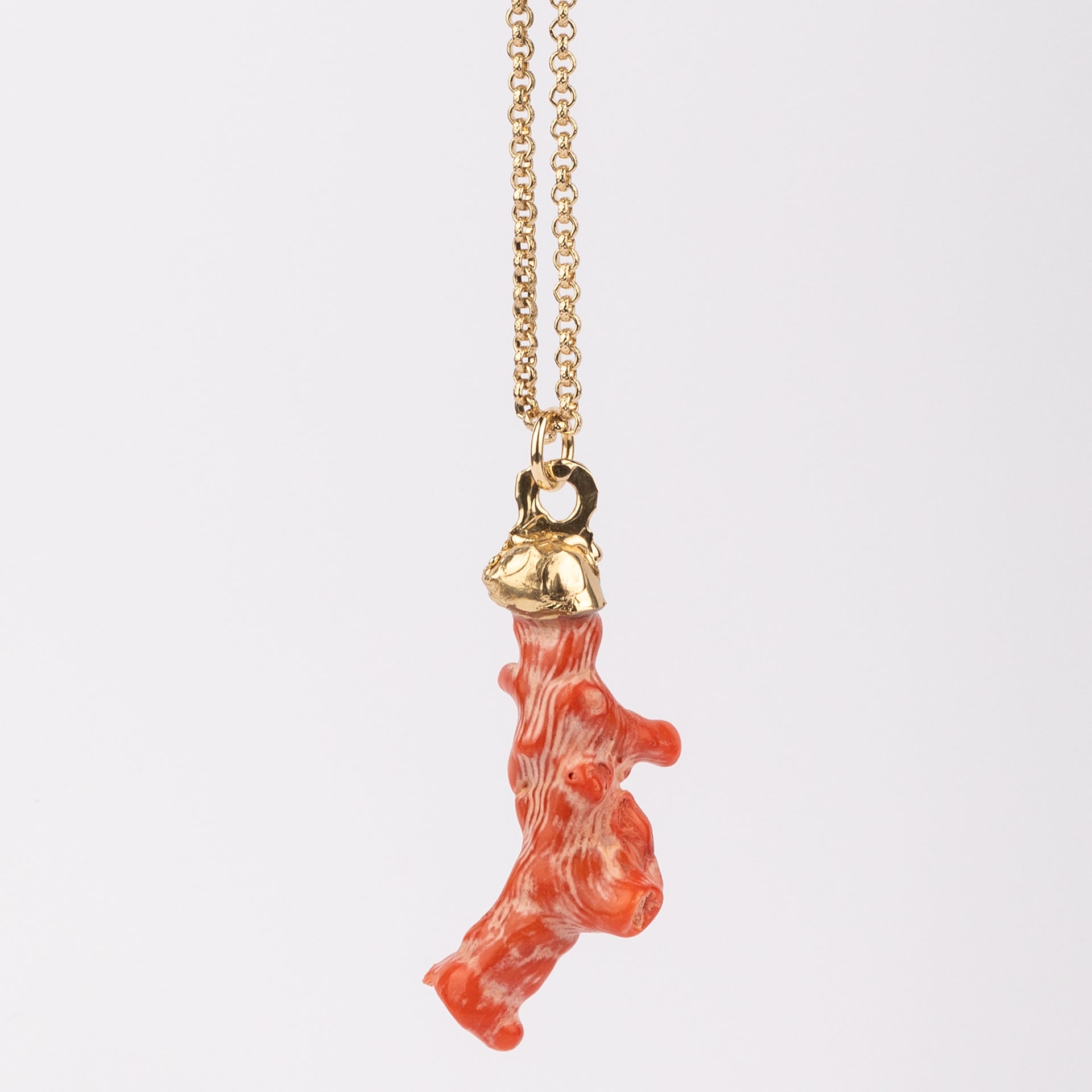 Un ciondolo che combina l'eleganza del corallo, la forza del bronzo bianco e la lucentezza dell'oro 18 carati è un gioiello che cattura l'essenza del mare e la raffinatezza della terra. Il ramo di corallo, scolpito dalla natura, si intreccia armoniosamente con la fusione artistica del bronzo, reso ancora più prezioso dal bagno d'oro. Ogni dettaglio di questo ciondolo racconta una storia di bellezza. Un gioiello che non è solo un ornamento, ma un talismano di eleganza e fascino senza tempo.