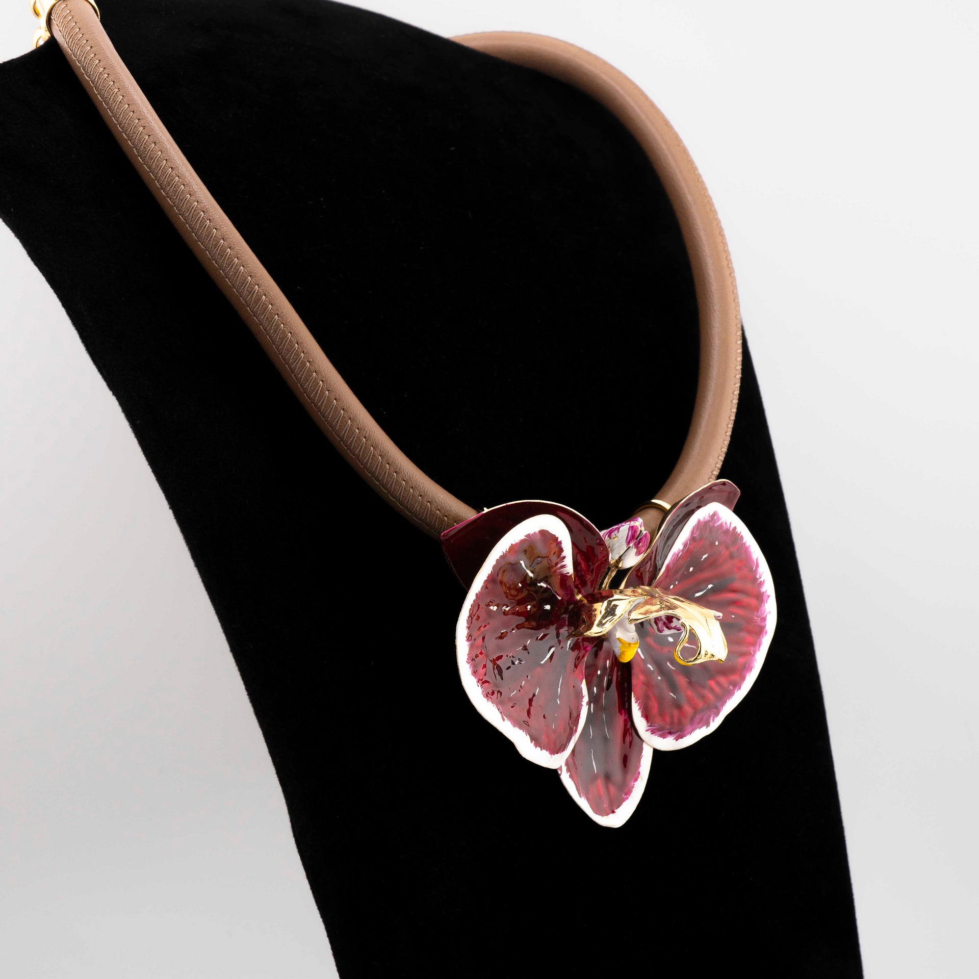 Collana Orchidea Burgundy dimensione 7.5 cm