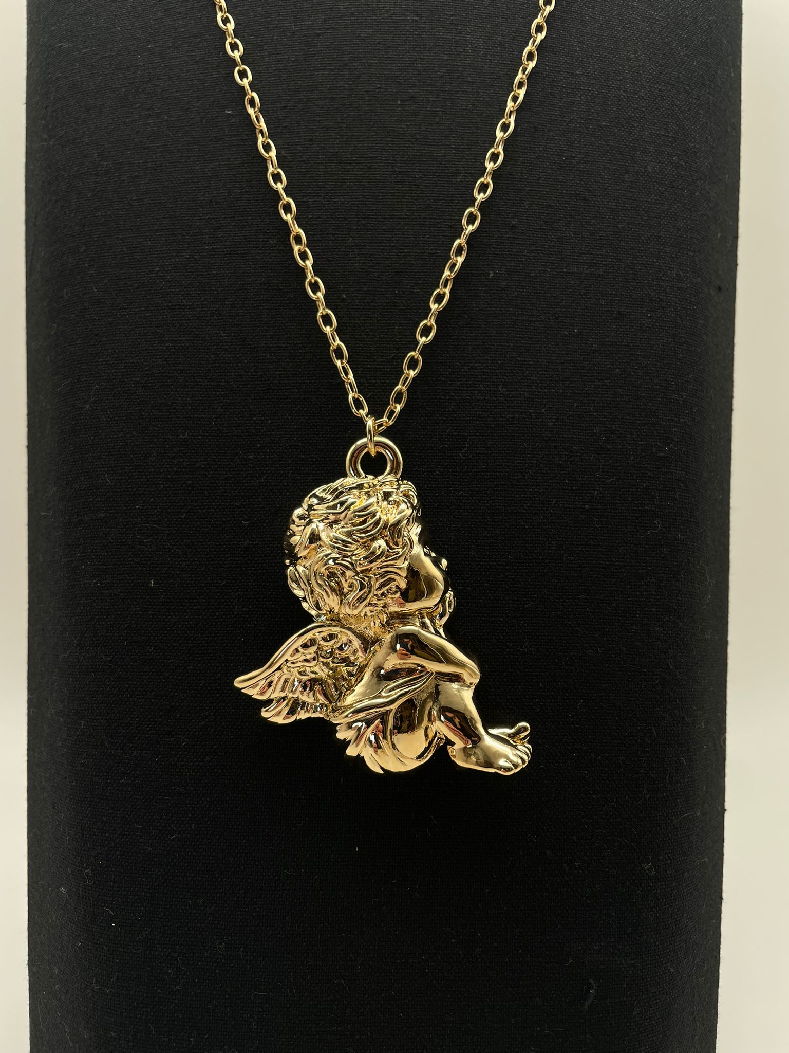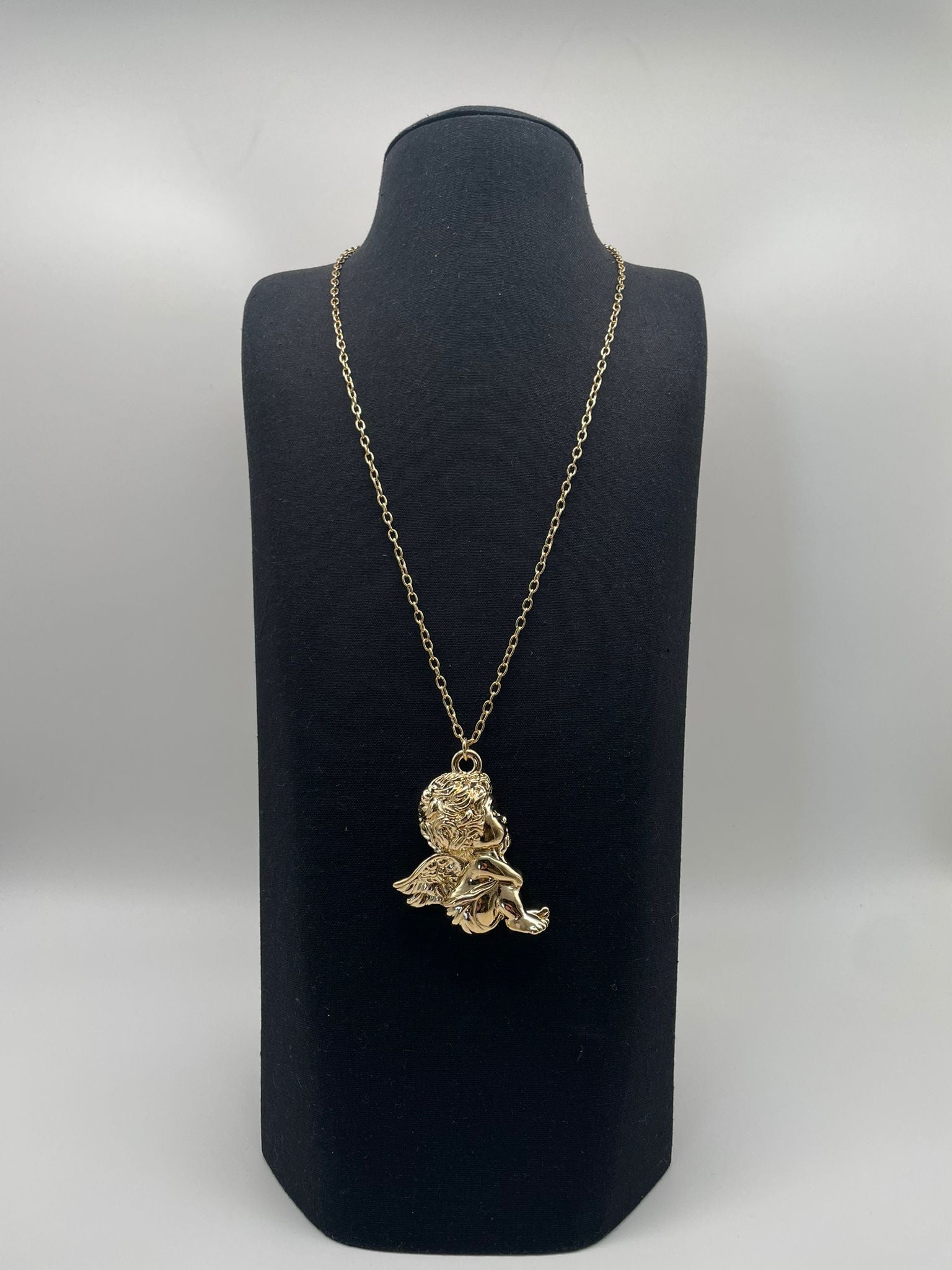 Collana lunga con angelo, misura grande, realizzato in elettroformatura, bagno oro 18 carati