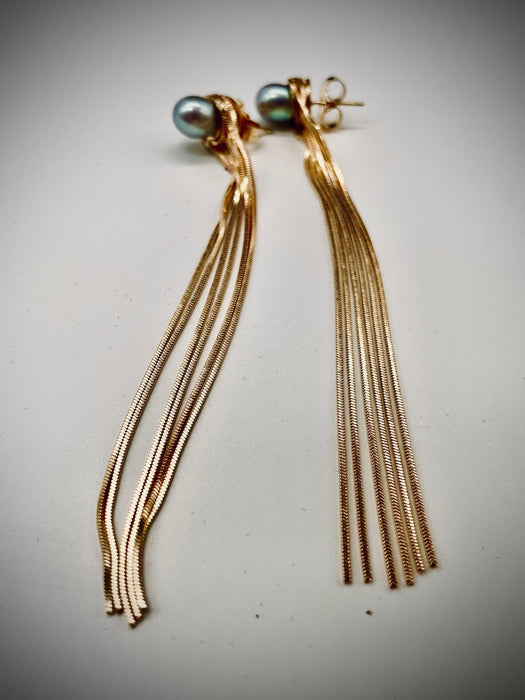 Perle irregolari, screziate come coralli e conchiglie, si intrecciano a fili dorati di luce. Alghe sospese nell’acqua, in un movimento silenzioso e profondo. Una collana che custodisce il respiro del mare e la magia dell’imperfezione. *Perle bianco grigie tonalità calda diametro circa 1 cm , irregolari. Lunghezza cm 8, perla naturale circa cm 1