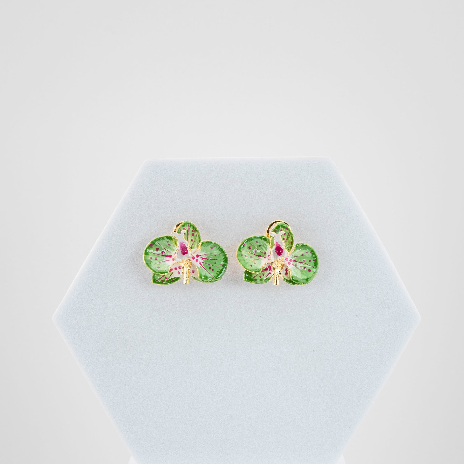 Orecchini Orchidea 'Verde Aloe e Geranio' dimensione 2 cm