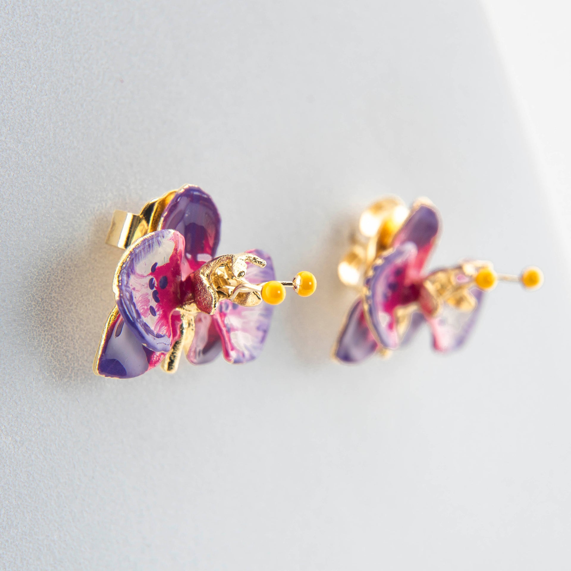 Orecchini Orchidea 'Purple e Geranio' dimensione 2 cm