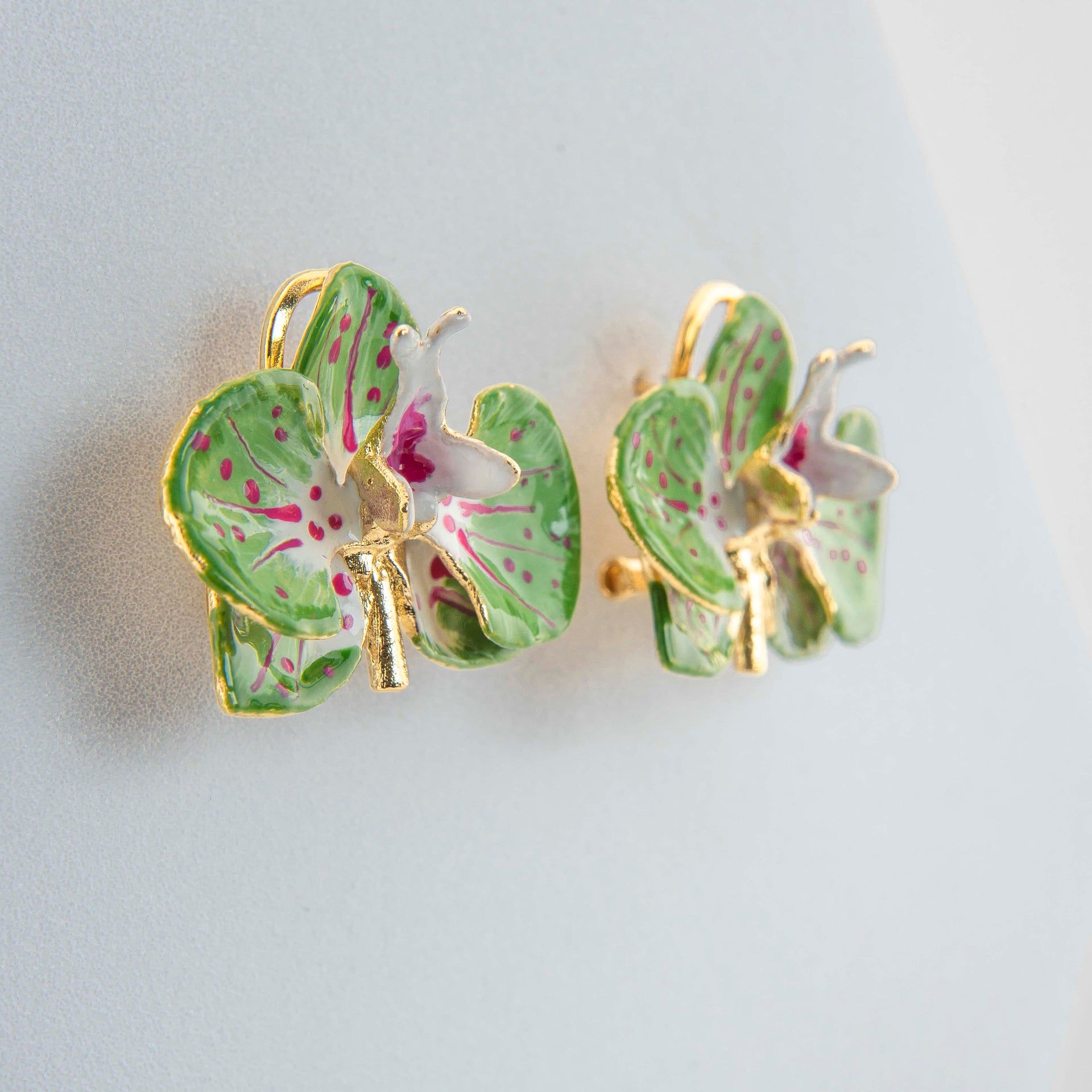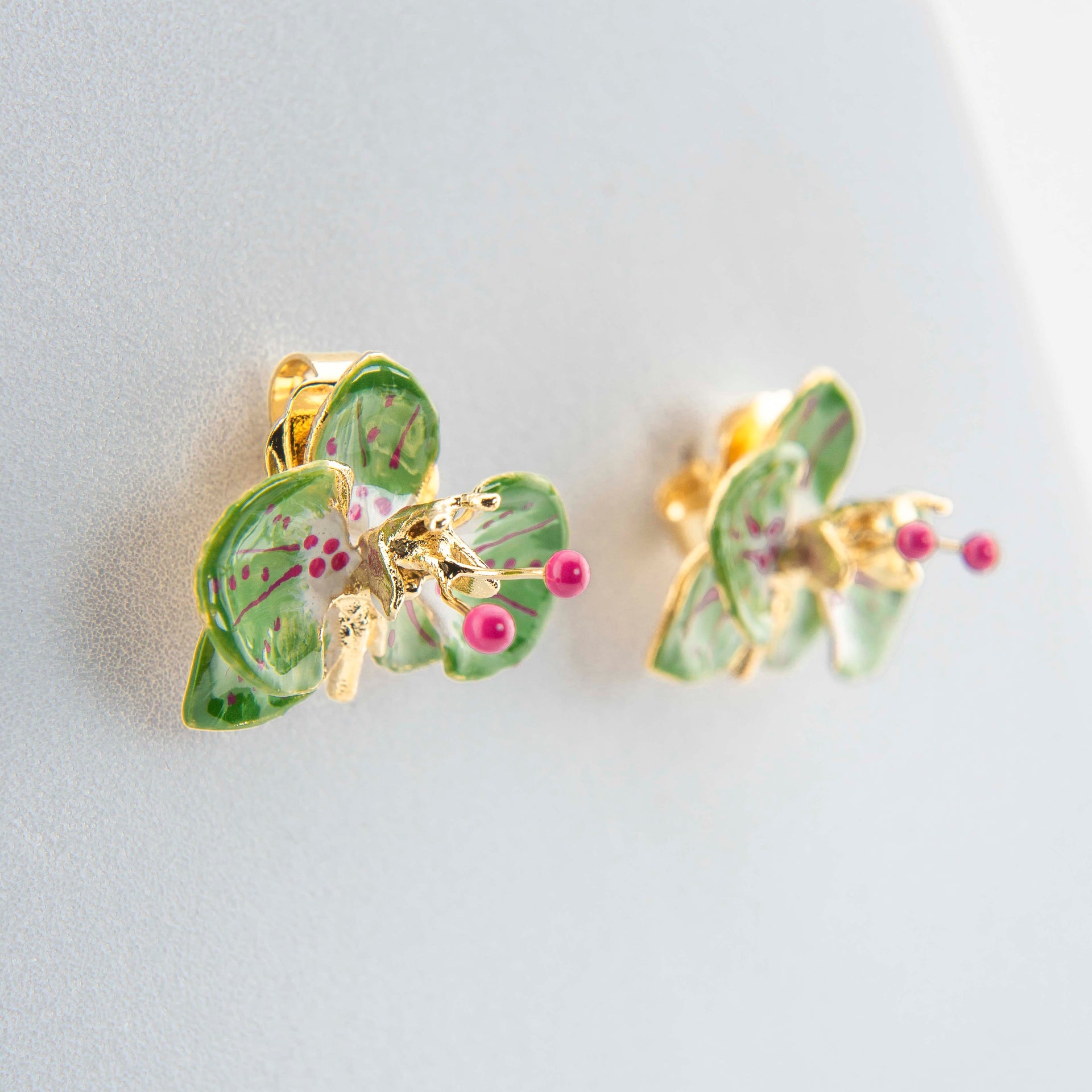 Orecchini Orchidea Verde Aloe e Geranio dimensione 3 cm