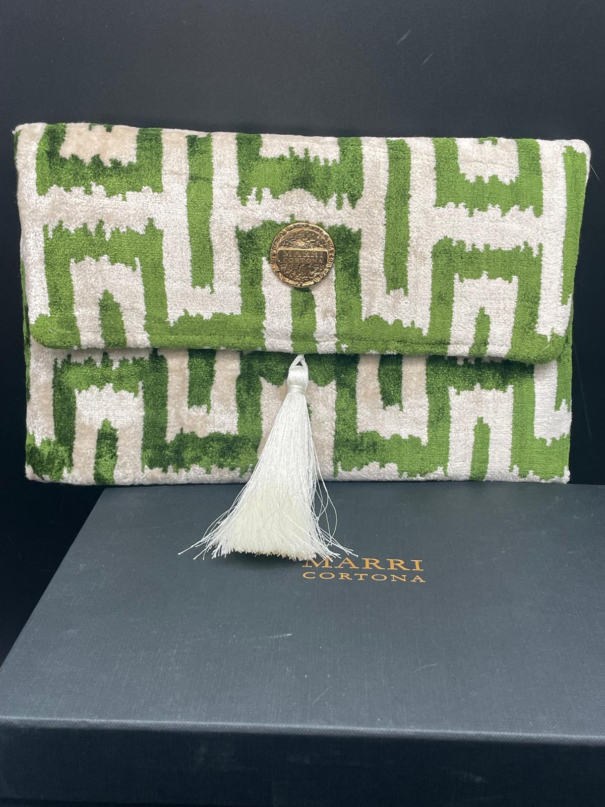 La borsa pochette in tessuto Suzani MarriCortona, 100% seta , foderatura in raso di seta.Il termine "Suzani" deriva dalla parola persiana "suzan", che significa "ago". Questo tipo di tessuto è realizzato mediante un'antica tecnica di ricamo a mano. La borsa pochette in tessuto Suzani è un vero e proprio pezzo d'arte da indossare.