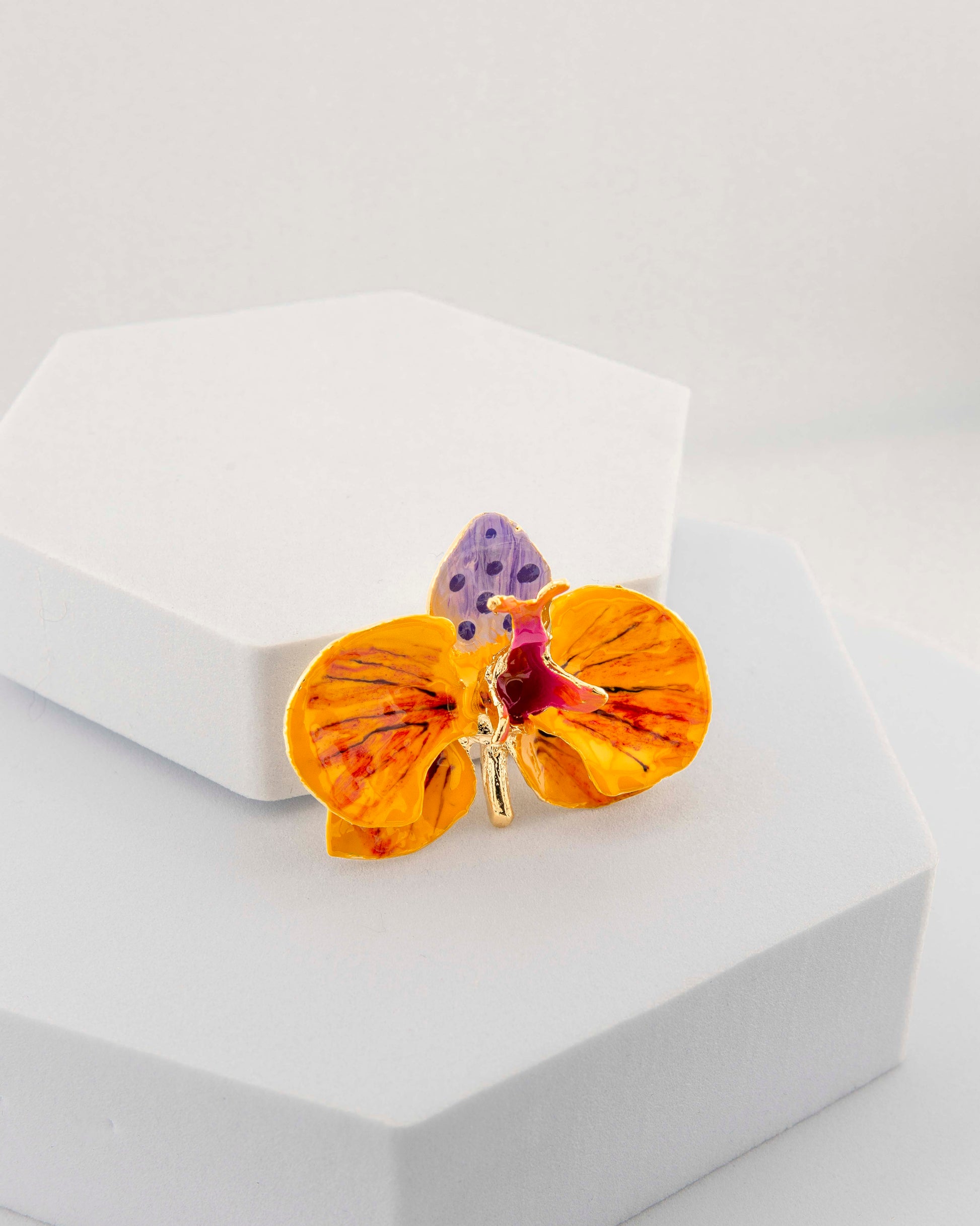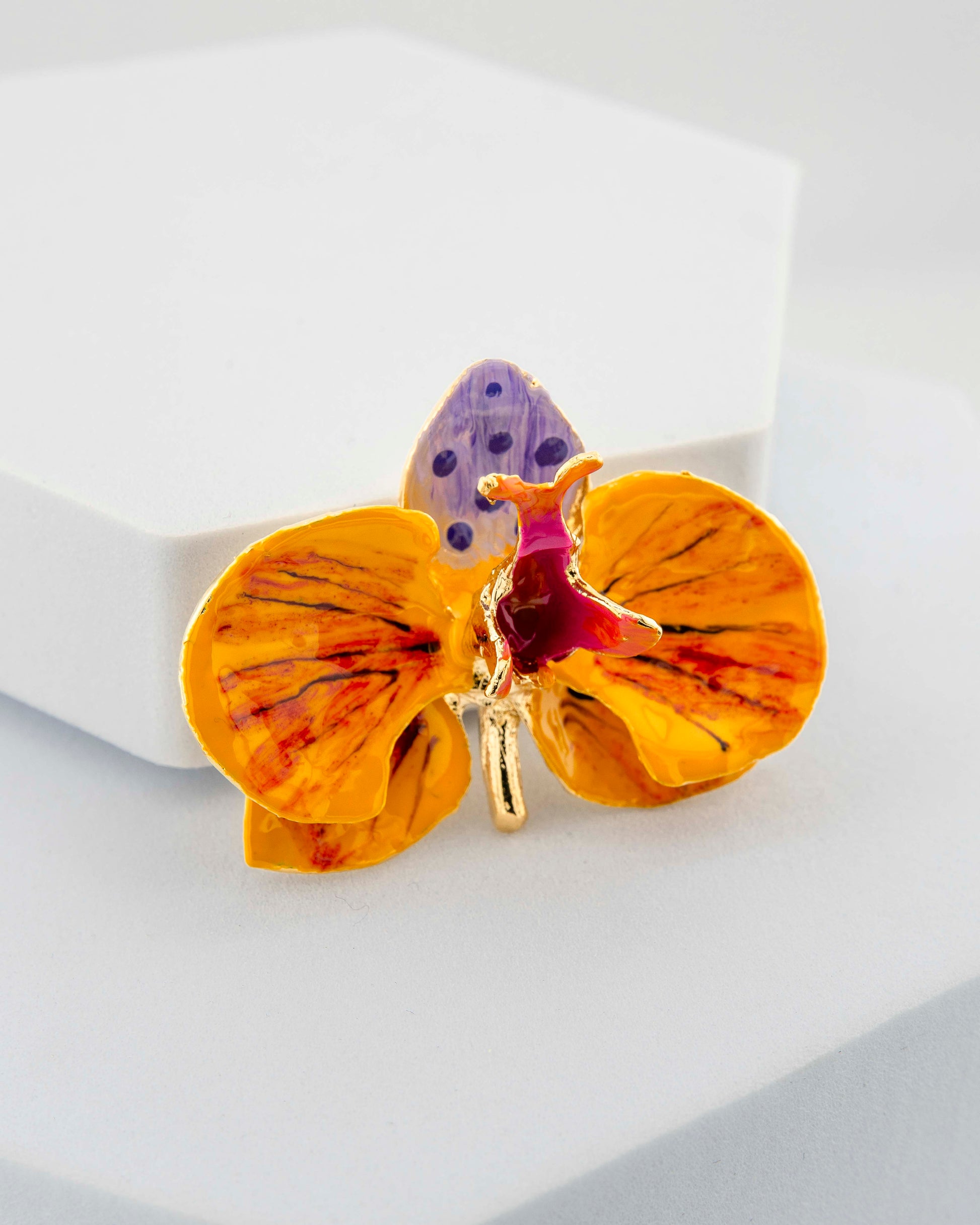 Spilla Orchidea Foliage e Prugna, dimensione cm 4 cm