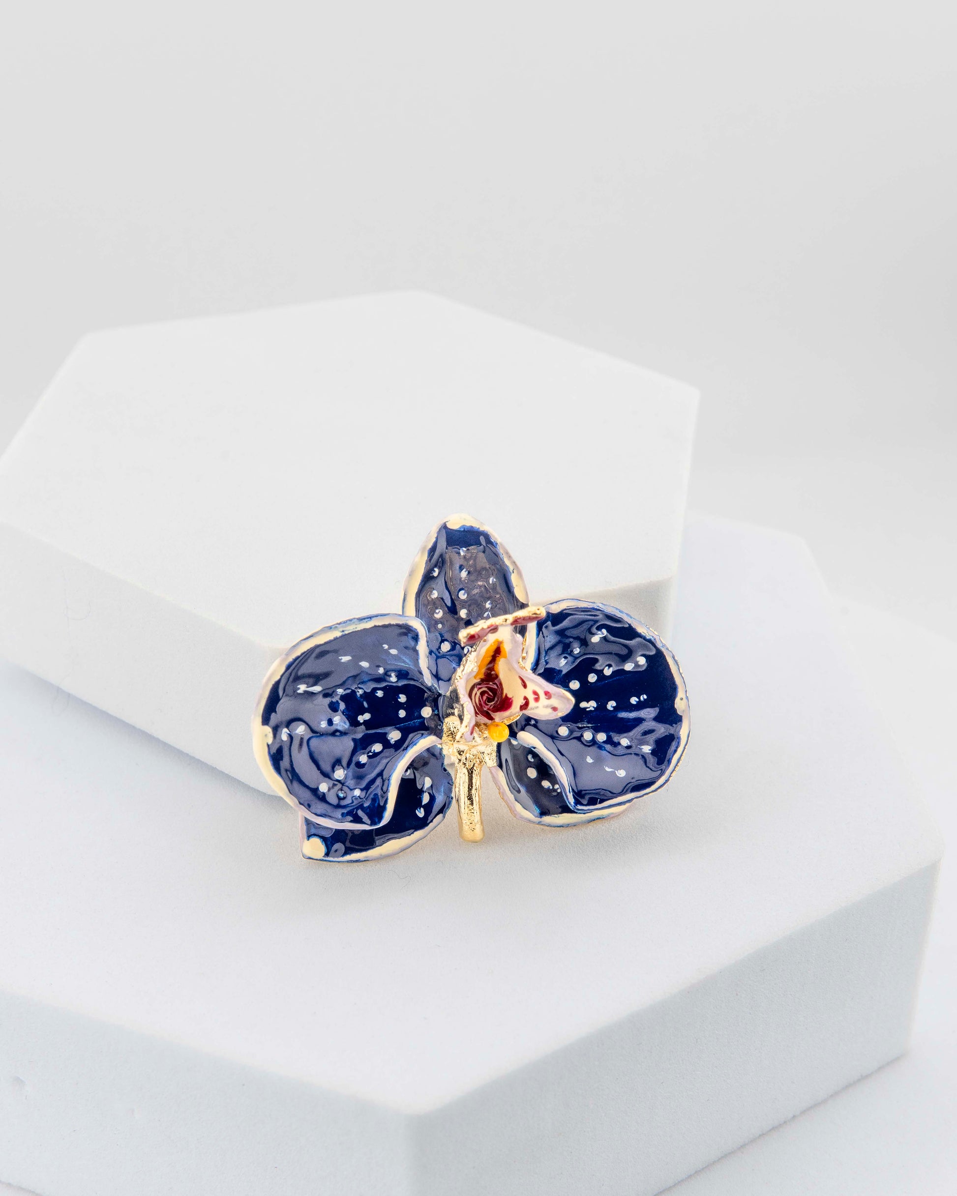 Spilla Orchidea Blue Armani e Latte, dimensione cm 4 cm